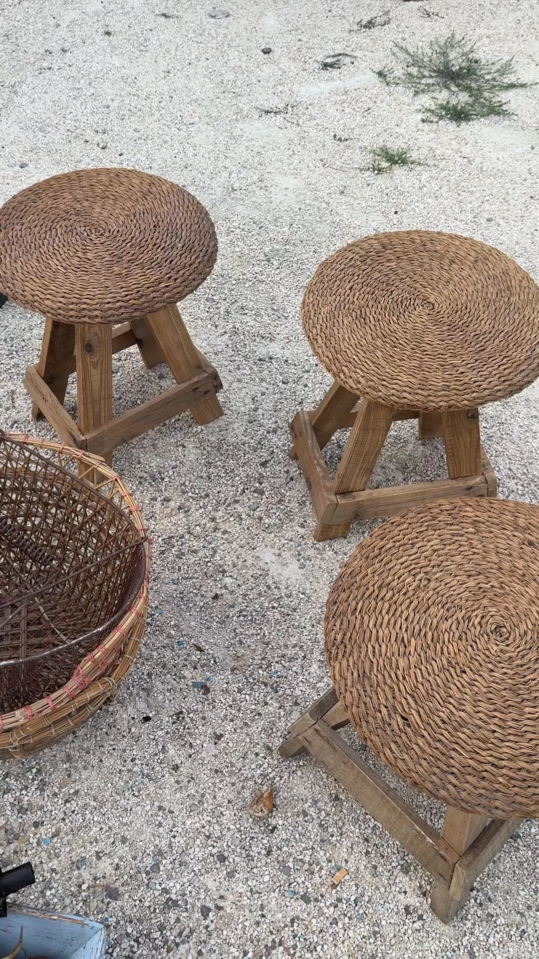 This is the kind of stool you end up moving from room to room. Found in Montpellier and originally from Spain, it carries the imprint of fifty years spent in kitchens and workshops where nothing was made to sit still. The wooden frame rests on angled legs with a simple stretcher, and the seat is hand-woven rush, coiled tight in a spiral that’s softened over time. Sylvie tucks it into a kitchen corner, pulls it up to a table, or leaves it exactly where it lands.