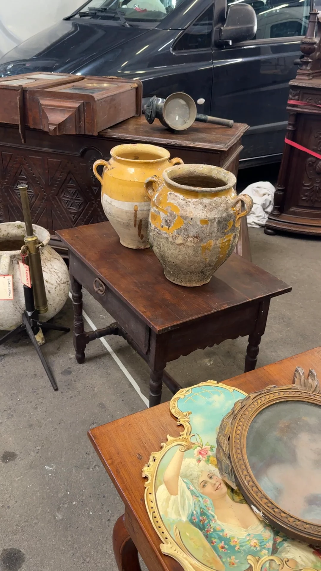 Found in France, this small table has a deep, quiet finish that comes from years of being touched, moved, and actually used. The chunky brass pull steals the show, and the scalloped apron is one of those details Sylvie always notices first. Turned legs keep it classic. It likely began as a petite writing or bedside table. Now it’s perfect in an entryway - a spot for keys, mail, and a stem of something fresh. Sylvie keeps one with a single taper candle and a stack of vintage postcards, exactly as pictured.