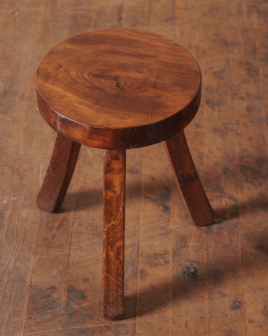 This small tripod stool has an easy gleam to its finish and a simple, confident shape that fits just about anywhere. The three splayed legs keep it stable while the rounded top adds a warm friendly touch. Sylvie loves it as extra seating, a mini side table, or even a bath-side perch for candles and a book.