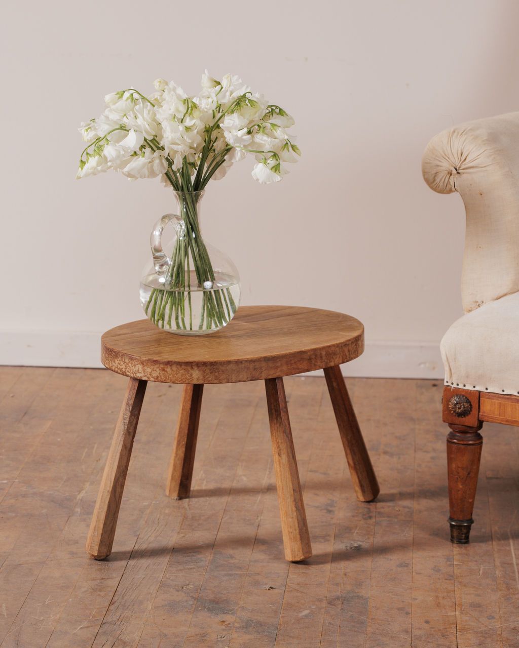 A stool this charming makes you wonder how many mornings it once spent in a farmhouse kitchen in rural France. Originally used as a low work stool for peeling vegetables or tending the fire, its broad oval seat and faceted legs were built for sturdiness above all, which is exactly what gives it so much character now. Sylvie brings it into the present as a small side table or perch that roams easily from room to room.