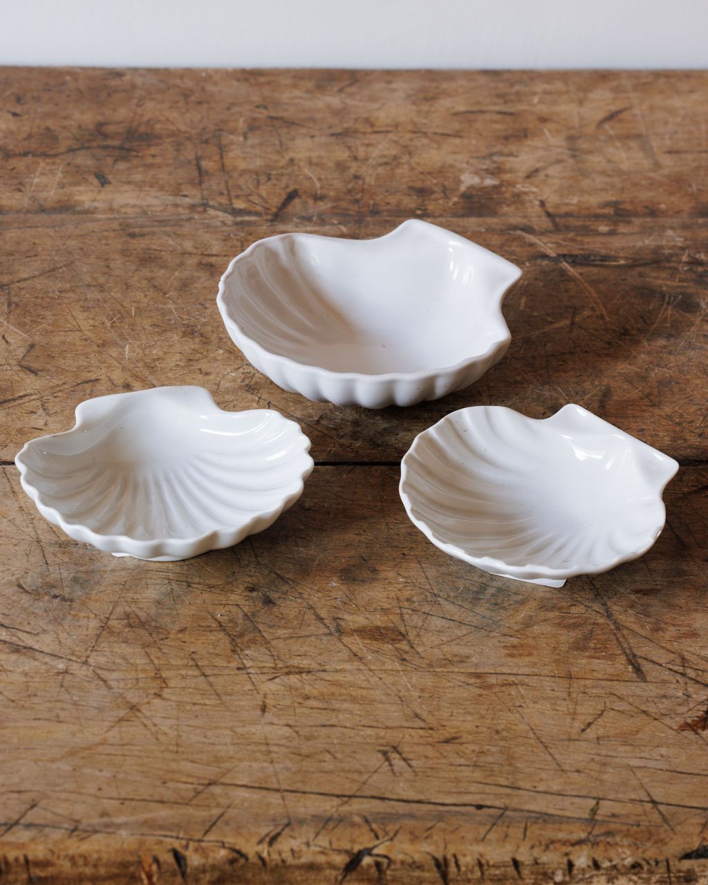 Each of these French ceramic shell dishes has the soft ridges and gently scalloped edge you expect from old coastal pottery. The small size is perfect for salts or sauces, the medium holds citrus or olives, and the large works beautifully for serving or as a styling piece on a table. Sylvie keeps all three sizes on hand because they always find a job. Available in medium, and large, sold individually.