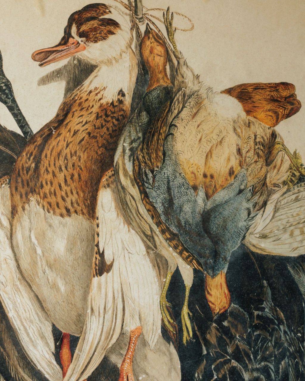 This one came home with us from a private Provençal bastide - the kind of place that feels more like a museum than a house. We were invited in by its owner Simon, and this print was one of those pieces you don’t leave behind. Dating to the early 20th century, the subject is richly detailed and slightly dramatic, with birds from a hunt layered and arranged almost sculpturally across the page. What really makes it sing is the frame: original, softly worn gilt with just enough age showing at the corners to keep it from feeling formal. Sylvie loves this leaned on a shelf or hung where it can be taken in slowly.