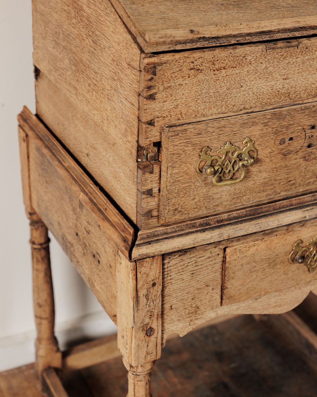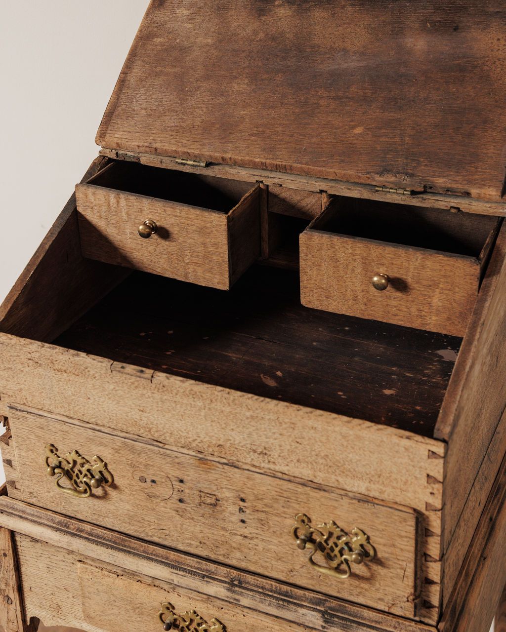 This one was made to move. Found in Avignon and dating to the 19th century, this English traveler’s desk was designed for a life in transit, compact, self-contained, and built to carry what mattered. The sloped lid opens to a writing surface, while the drawers below kept papers, tools, and personal effects organized on the road. Pieces like this were used by merchants, officers, and anyone moving between cities, offering a sense of order no matter where they landed. The joinery is tight, the proportions thoughtful, and the wear sits right where you’d expect from years of handling. Sylvie places it beside a chair or bed, somewhere quiet, where it can go back to its original rhythm.