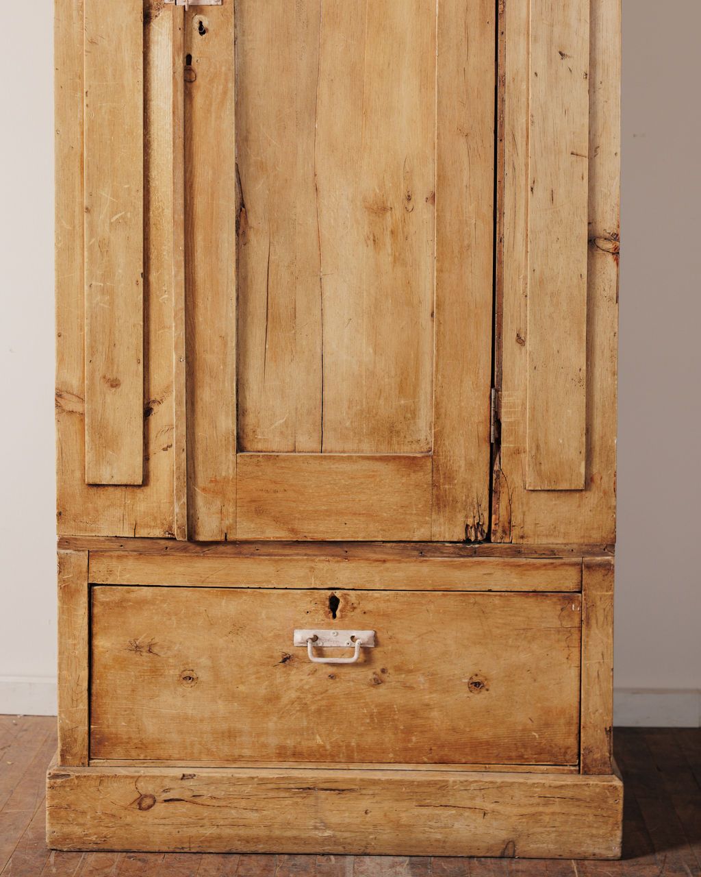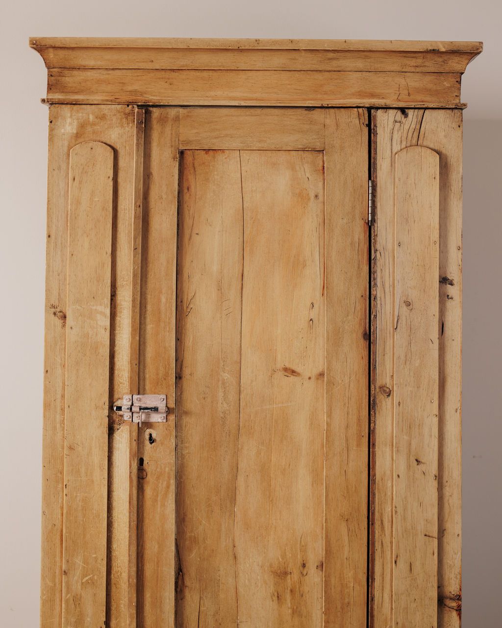 Found in Avignon but originally from a 19th-century hotel in Saint-Tropez, this cupboard comes out of the part of the building guests never saw - the back-of-house rhythm where linens were constantly being washed, aired, and turned over. In hotels along the Riviera, where humidity and sea air were constant, storage wasn’t just about holding textiles, it was about keeping them dry, fresh, and ready. The back openings are the tell. They were intentionally built in to allow air to move through the cabinet, creating a slow, continuous circulation so damp linen could dry without heat or damage. The wood has softened to that pale, sun-washed tone you only get from years near open windows, salt air, and constant use. Sylvie loves it in a bedroom for linens, stacked high on the shelves, each pile visible the moment you open the doors.