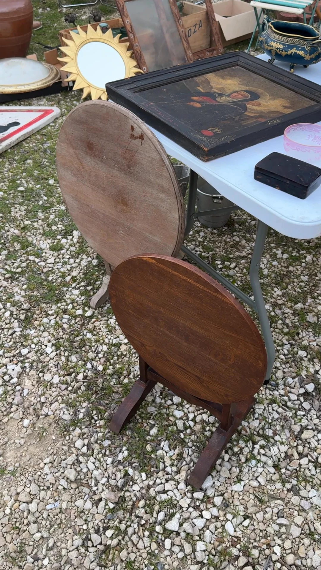 There’s something undeniably endearing about a table that folds away so gracefully. Found in Villeneuve-lès-Avignon and dating to the 1950s, this petite round wine-tasting table was designed to fold down with ease, once tucked away in a compact Provençal cellar between tastings. Its slender legs and clever wooden hinge make it perfect now as a bedside table or side companion in a reading nook.