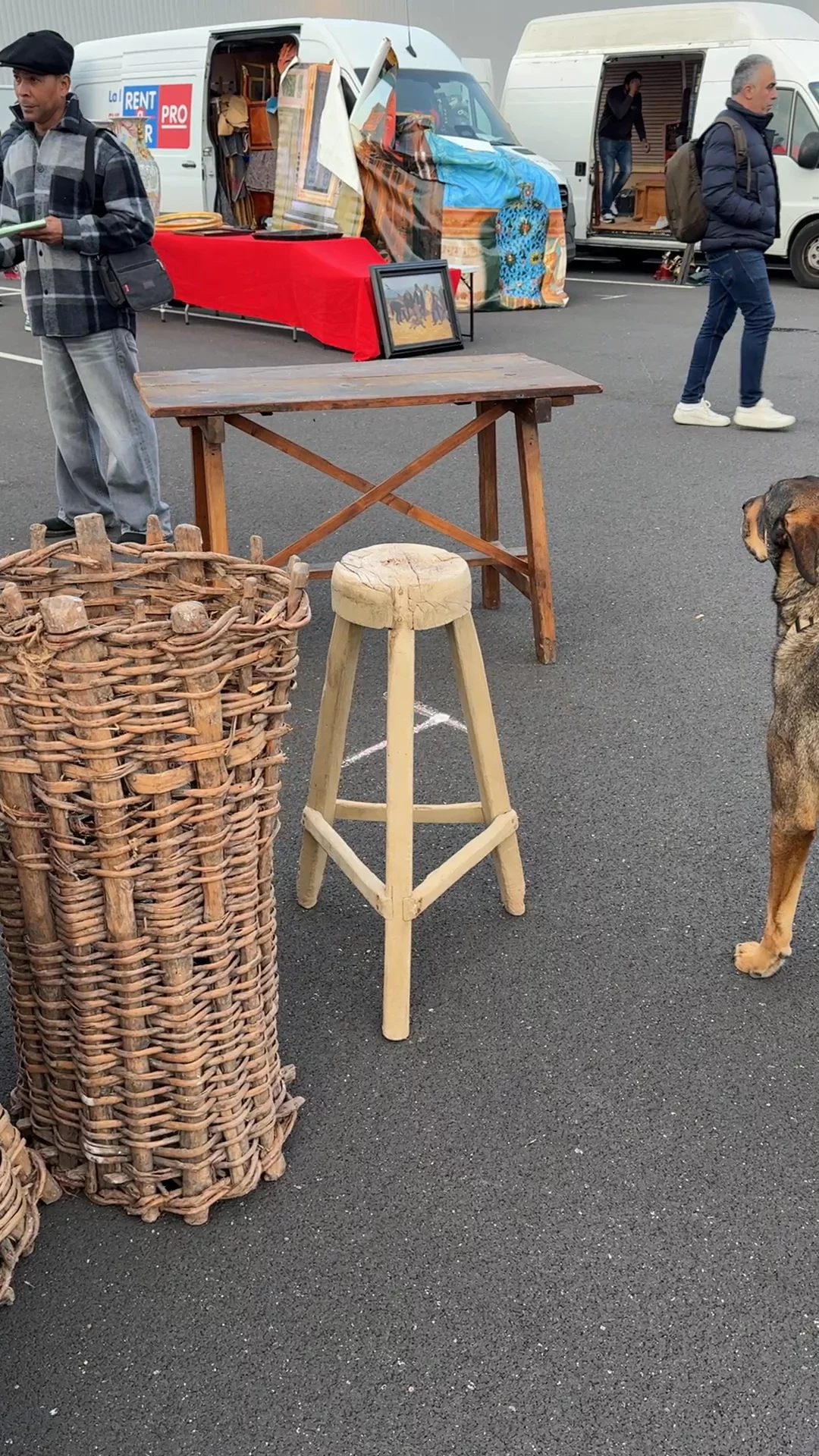 Hardworking tools often make the best objects. This primitive Spanish work stool was originally used as a simple workshop seat, built from pale wood with thick legs and a sturdy stretcher base to keep it steady on uneven floors. The worn seat and honest construction show years of practical use. Sylvie likes it pulled into service now as a pedestal for sculpture, plants, or anything that deserves a little extra height.