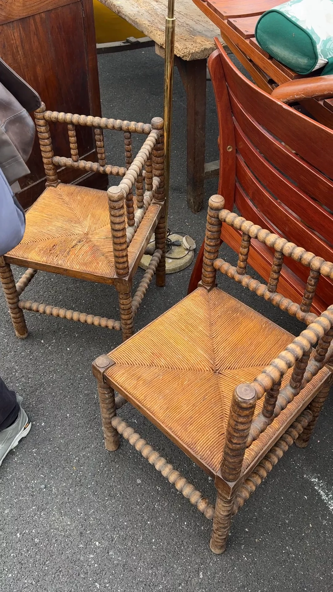 This is the kind of chair people regret not buying. A solid wood bobbin corner chair from Villeneuve, with beautifully turned spindles and a rush seat that still holds strong. Originally designed for French dressing rooms, its low, sturdy stance and sculptural frame make it just as striking now in a reading nook, a bathroom corner, or tucked beside a fireplace. There’s a small area of wear to the seat, visible and reflected in the price. Sylvie swears by it for that unexpected piece that makes guests say, wait where did you find that.