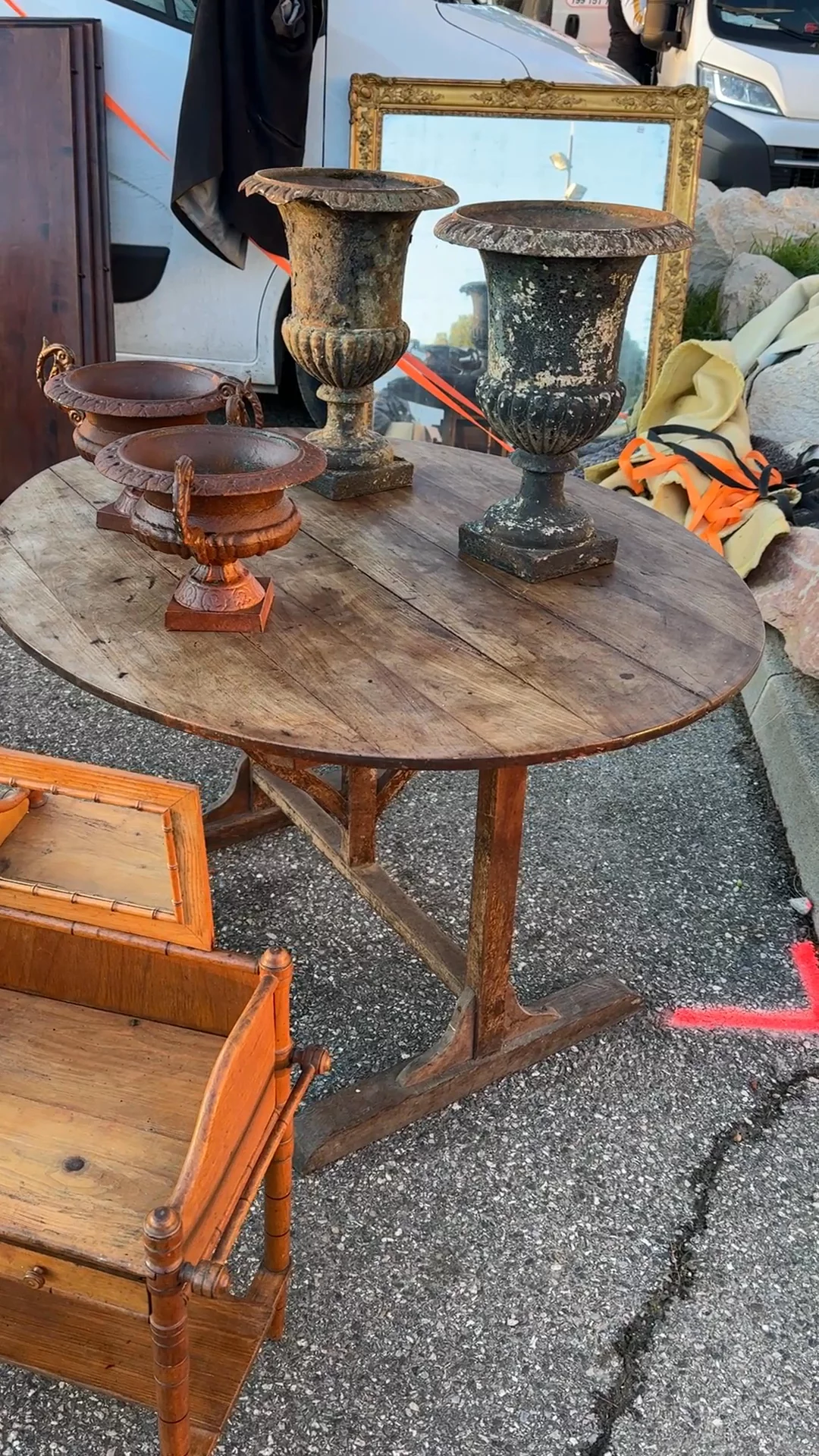 This early 1900s French walnut wine tasting table, found in the Aix-en-Provence, is as clever as it is charming. With a beautifully preserved finish and an ingenious folding mechanism, it was designed for easy storage in bustling wineries. Once used to sample wines straight from the barrel, it’s now ready to be your kitchen, dining or entryway table.