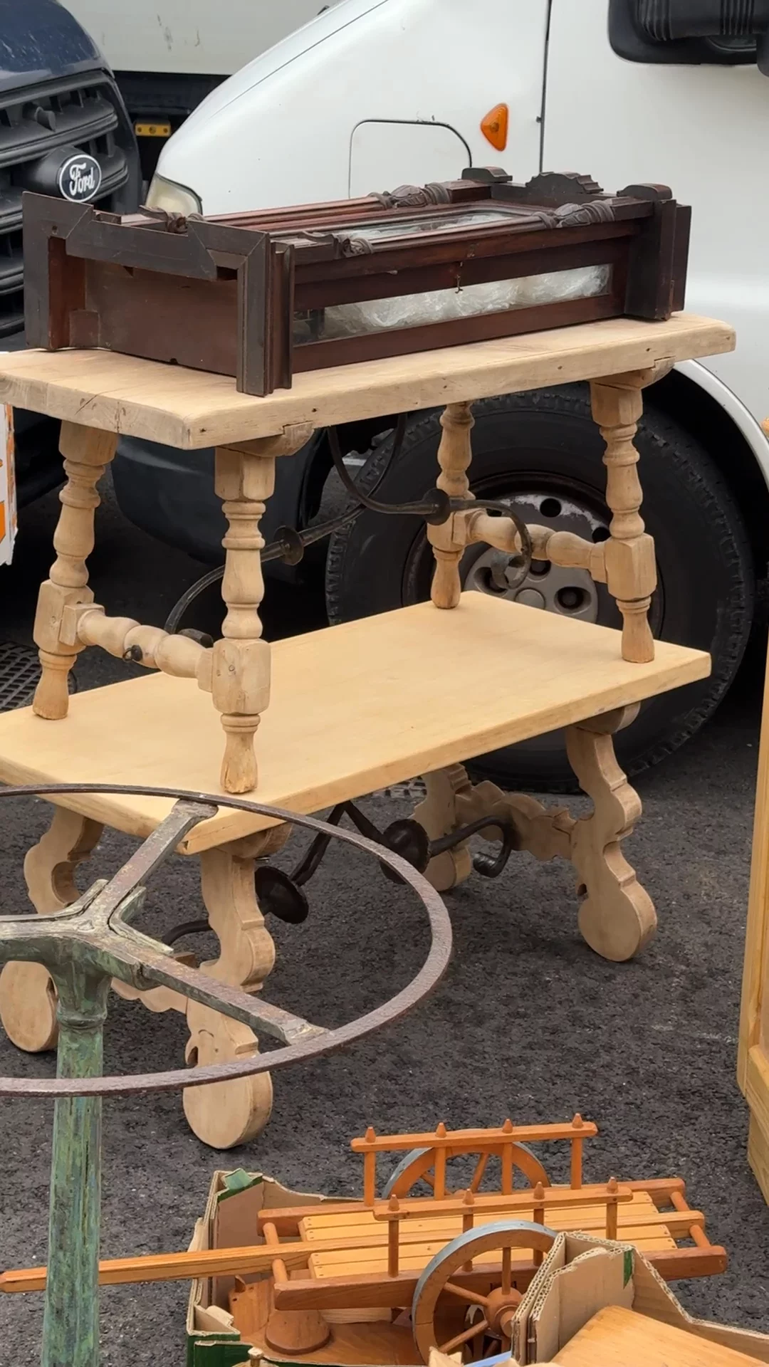 This one gets its strength from the base. Found in Avignon and rooted in traditional Spanish ironwork, the table pairs a pale, sanded wood top with carved legs and a forged iron stretcher below. That iron detail isn’t just for show, it was how these tables were built to hold up to daily life. Sylvie keeps it in a living room, holding a stack of books and whatever ends up there by the end of the day.
