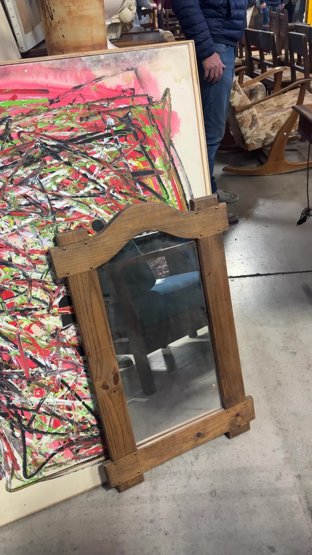From the French Alps and dating to the 1930s, uncovered in Montpellier, this mirror has that unmistakable mountain hand to it - built with intention, not decoration. Thick pine boards are stacked and fixed with exposed brass studs, each one visible. Alpine interiors weren’t about excess - they were about what lasted. Sylvie loves it in her bedroom to catch final looks as she walks out the door.