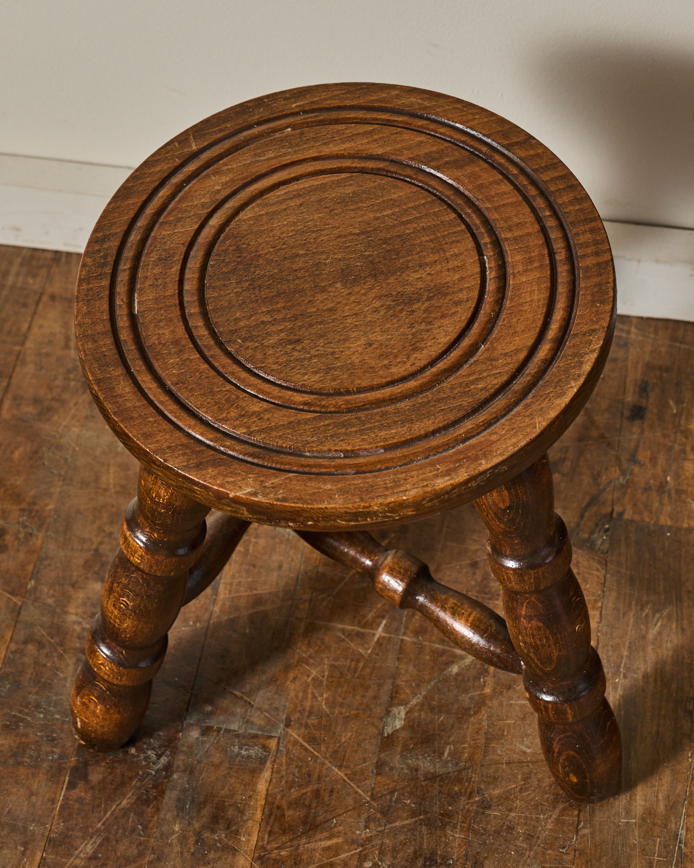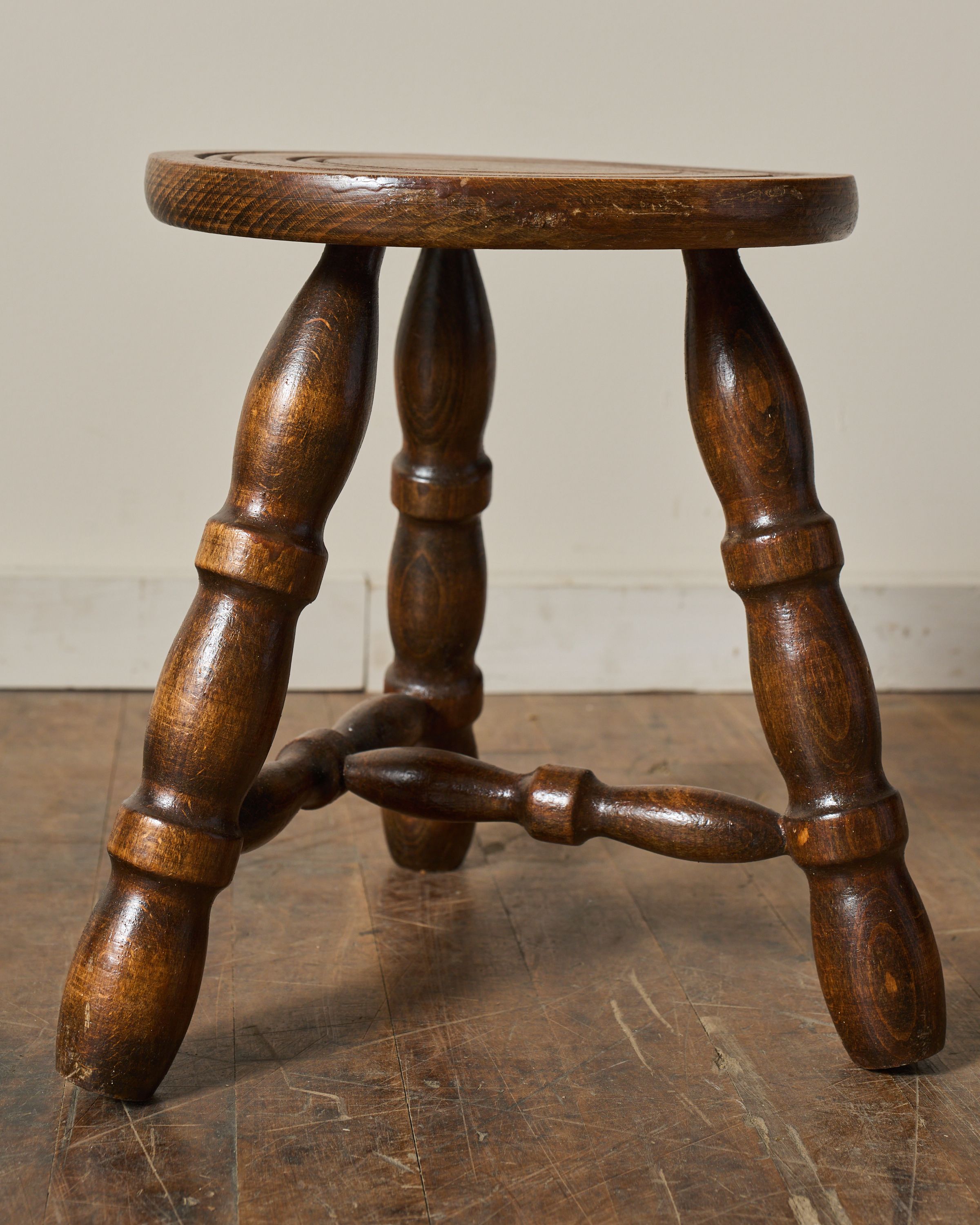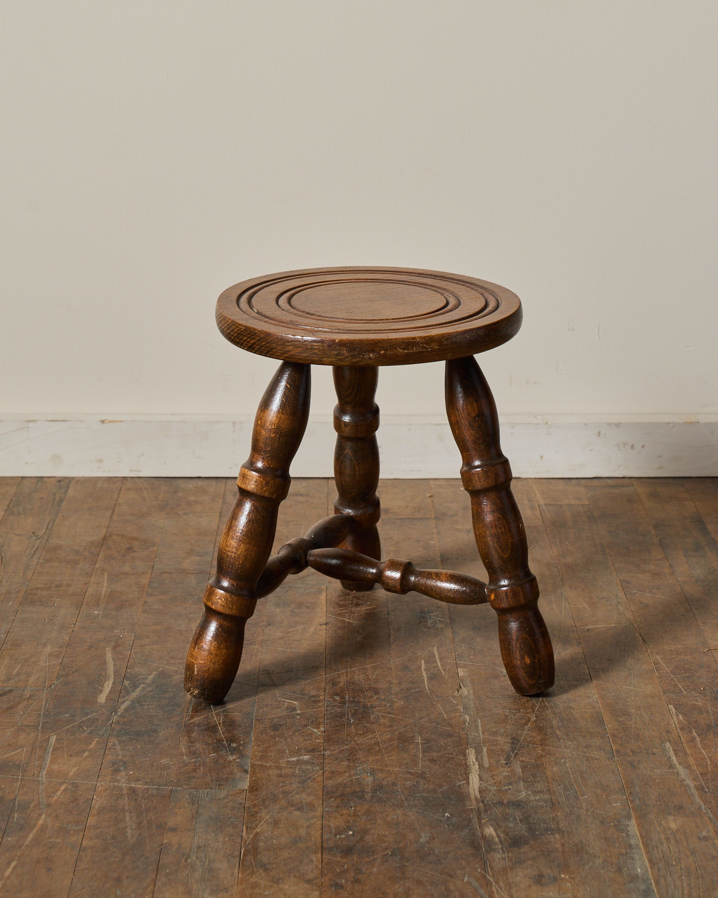 A Sylvie classic if there ever was one, this French bobbin stool features wonderfully wavy turned legs and a round seat carved with concentric rings. Found in Villeneuve-lès-Avignon and built with the kind of straightforward charm that makes it endlessly useful, Sylvie pulls these into every room for perching, stacking books, or setting down a glass of something cold.