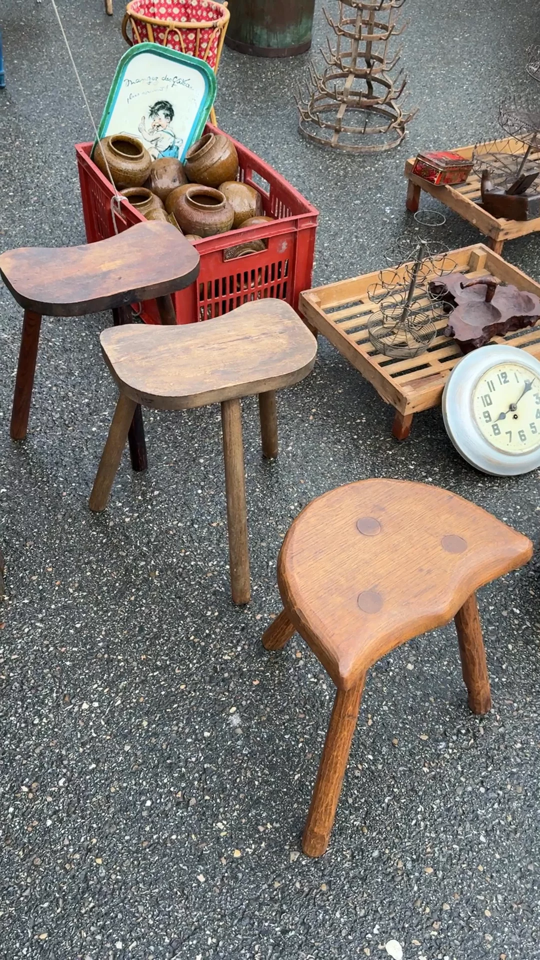 Low to the ground and built without fuss, the French milking stool is a form that has not needed improving. Made from solid wood with three splayed legs for stability on uneven floors, the seat is left thick and slightly irregular, worn smooth from constant handling in farmhouse kitchens and barns. Sylvie brings them inside beside a chair to hold a book and a cup of herbal tea.