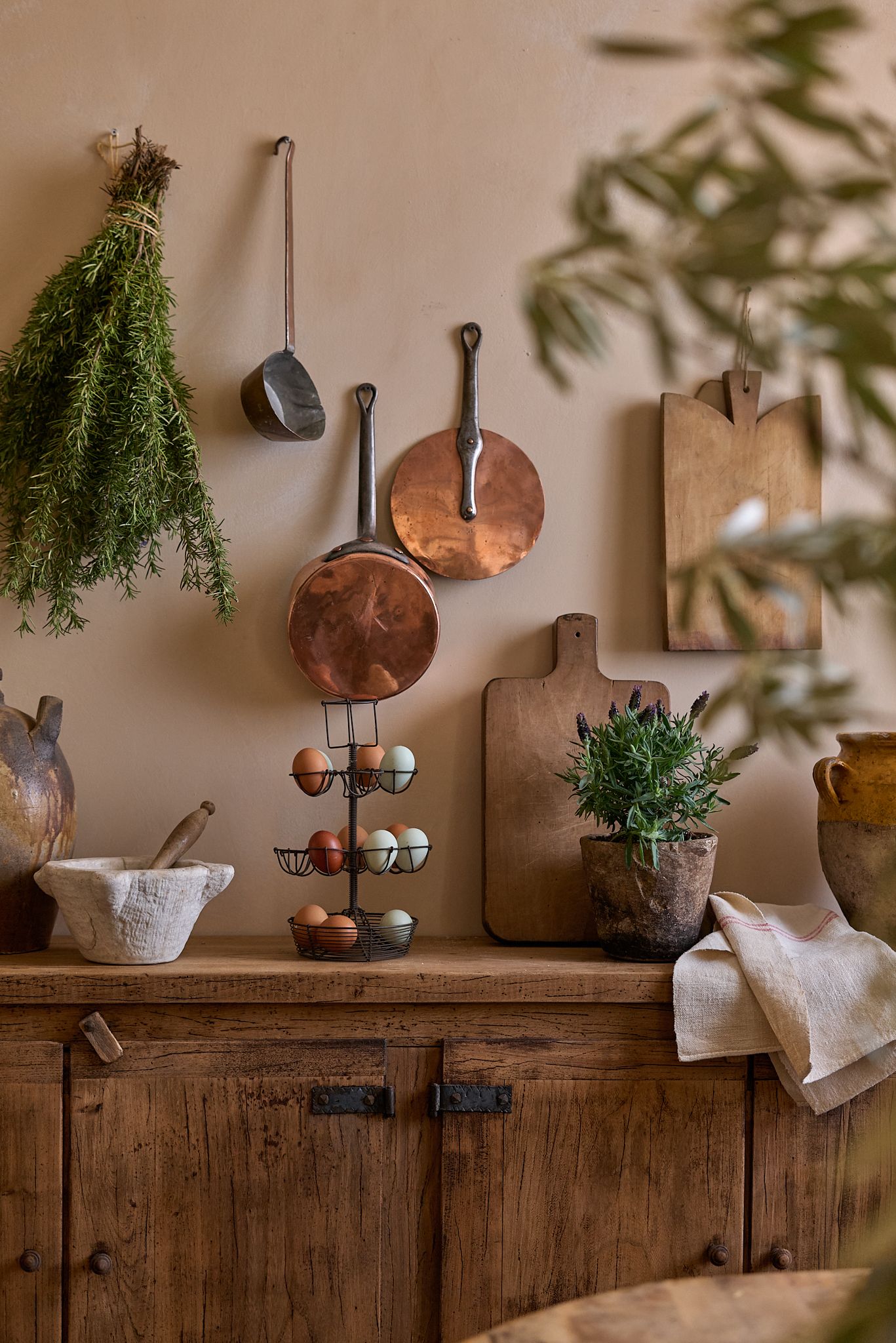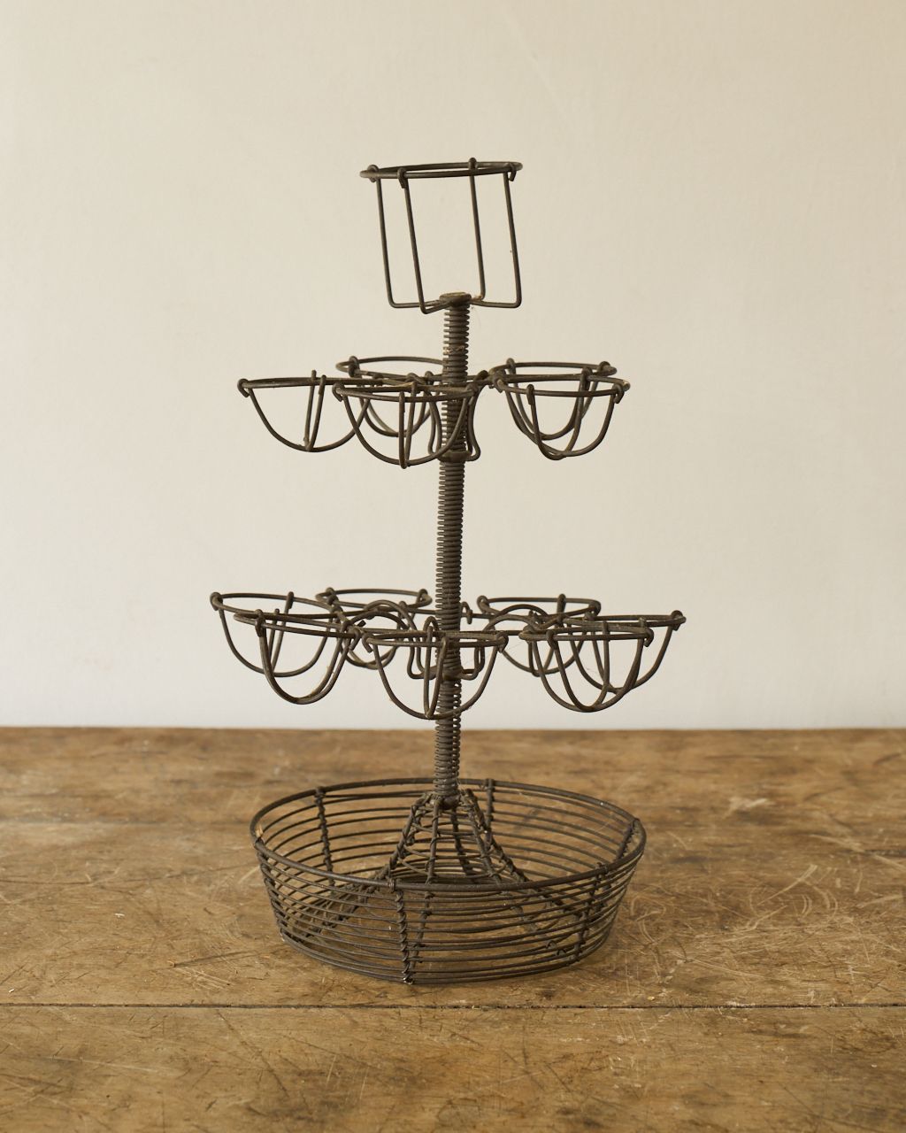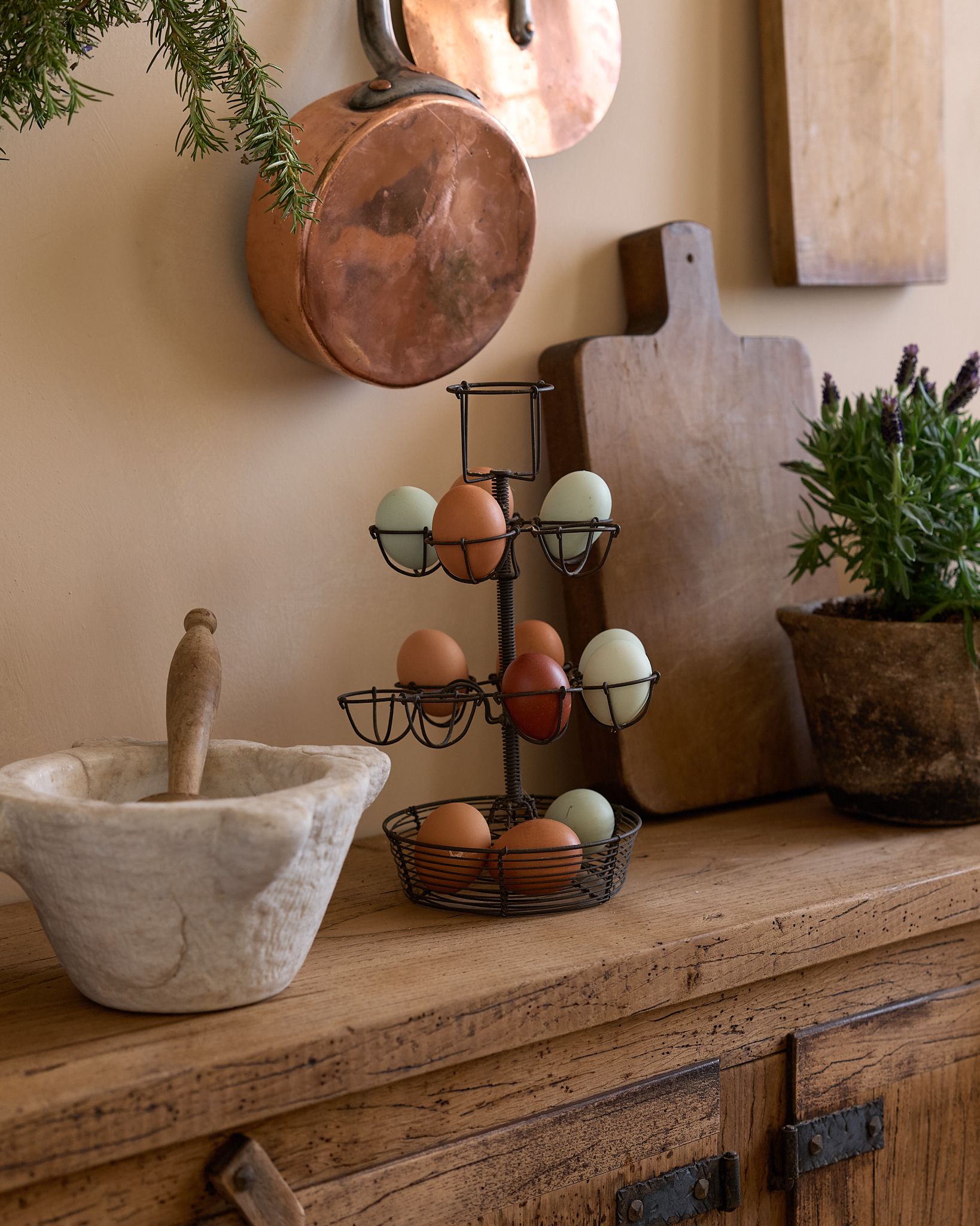 From Villeneuve-lès-Avignon and dating to the 1950s, this French egg rack would have sat out on a kitchen counter, holding the day’s eggs at room temperature before use. The tiered wire structure is both practical and considered, allowing air to circulate while keeping each egg separate and easy to reach. Pieces like this were common in mid-century French kitchens, especially in homes that sourced eggs directly rather than refrigerating them. Sylvie loves it kept out on her kitchen island, just as it was originally intended.