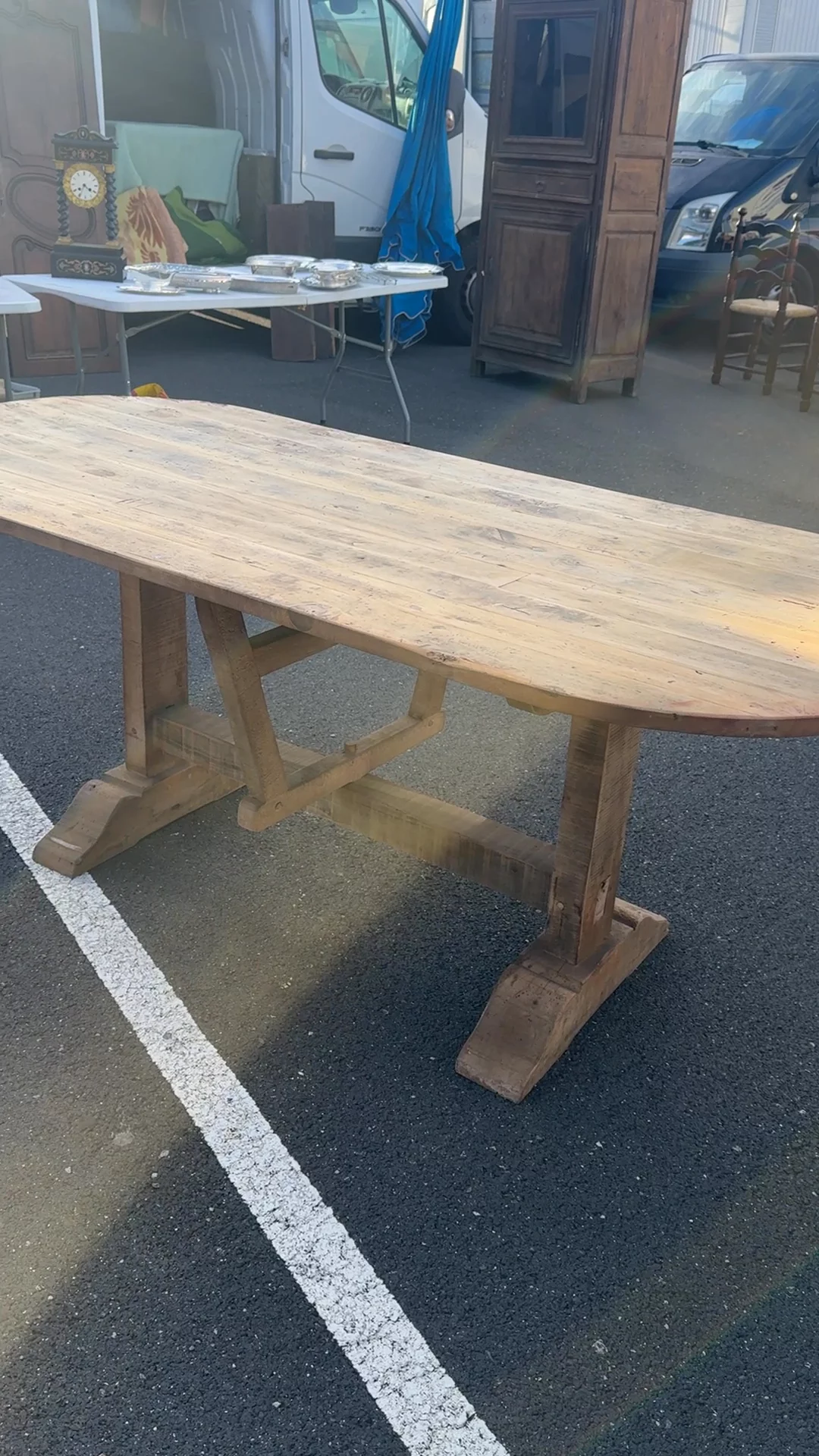 This is a size you almost never see. From the Languedoc region and dating to the early 20th century, this oval vineyard table was uncovered in Béziers, where wine production shaped daily life and furniture followed suit. Tables like these were used during tastings and harvest periods, set just outside or inside the cellar, where growers would gather to sample barrels, take notes, and share decisions over the vintage. The oval form isn’t just beautiful - it allowed more people to gather closely. Sylvie loves it exactly where people come together, a bottle open, glasses scattered, the kind of table that invites you to stay a little longer.
