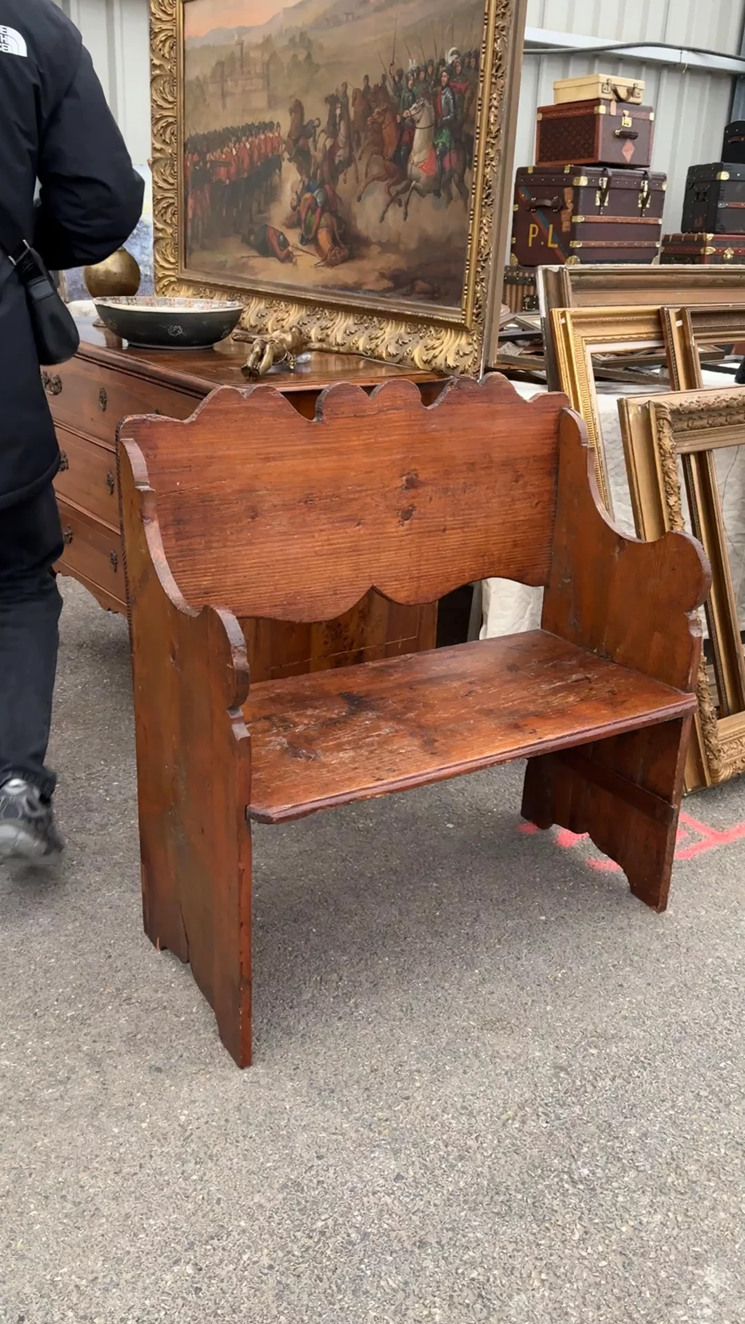 This is one Sylvie always slows down for. Found in Montpellier and dating to the 19th century, this bench comes from the Italian Alps, where pieces like this were built for daily life in mountain homes - thick planks, simple joinery, and just enough carving to make it personal. Alpine benches were often made by hand from local wood, meant to sit against a wall or near the hearth, used for everything from meals to mending, built to last through generations. The backrest is where it really opens up - the soft scalloped edge, cut by hand, with that slight irregularity you only get when someone is working by eye rather than template. Sylvie loves it set along a wall with a stack of books, a jacket thrown over the side, and your rain boots tucked neatly underneath.