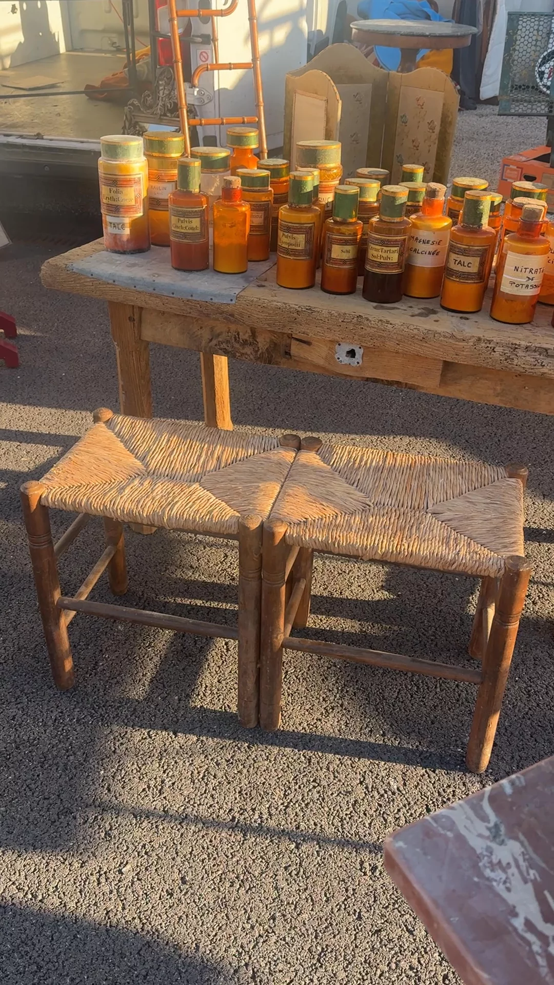 This is one Sylvie brought back thinking about kitchens that never really sat still. Found in Montpellier and dating to the 1940s, this French rush bench follows a long tradition of ladderback seating made across the countryside, where woven seats were done by hand using natural fibers and replaced over time as they wore through. The frame is turned wood with simple stretchers, built low and steady, while the seat is tightly woven in a geometric pattern that would have been done strand by strand. Pieces like this were often used at long farm tables or kept along a wall, pulled in when more seating was needed. Sylvie loves it where people actually gather - tucked under a table, dragged out when the room fills up, or left along a wall with a jacket thrown over the side.