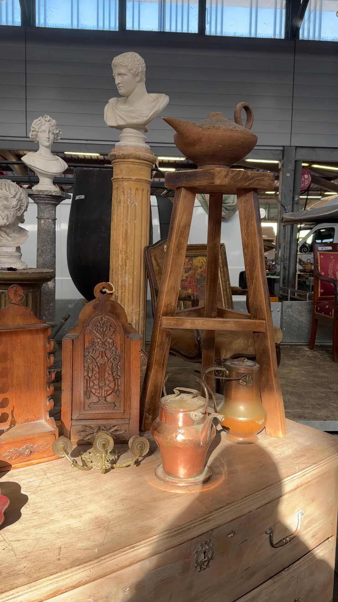 From Montpellier and dating to the 1940s, this sculptor’s pedestal was made for studio use, built to elevate works in progress to eye level while remaining steady and unobtrusive. The form is simple but deliberate - solid wood construction with four tapered legs set at an angle for stability, joined by a cross stretcher that reinforces the structure without adding weight. Sylvie uses it exactly this way, giving a small object or sculpture its own moment, lifted just enough to be seen properly.