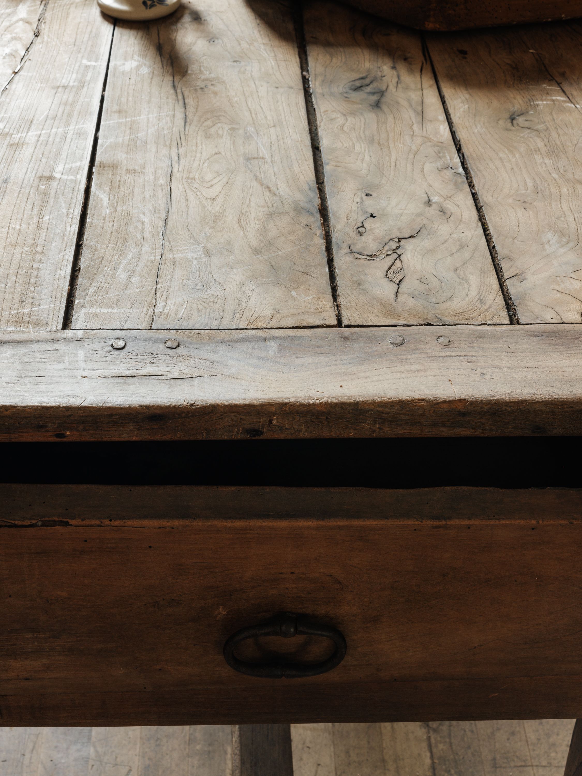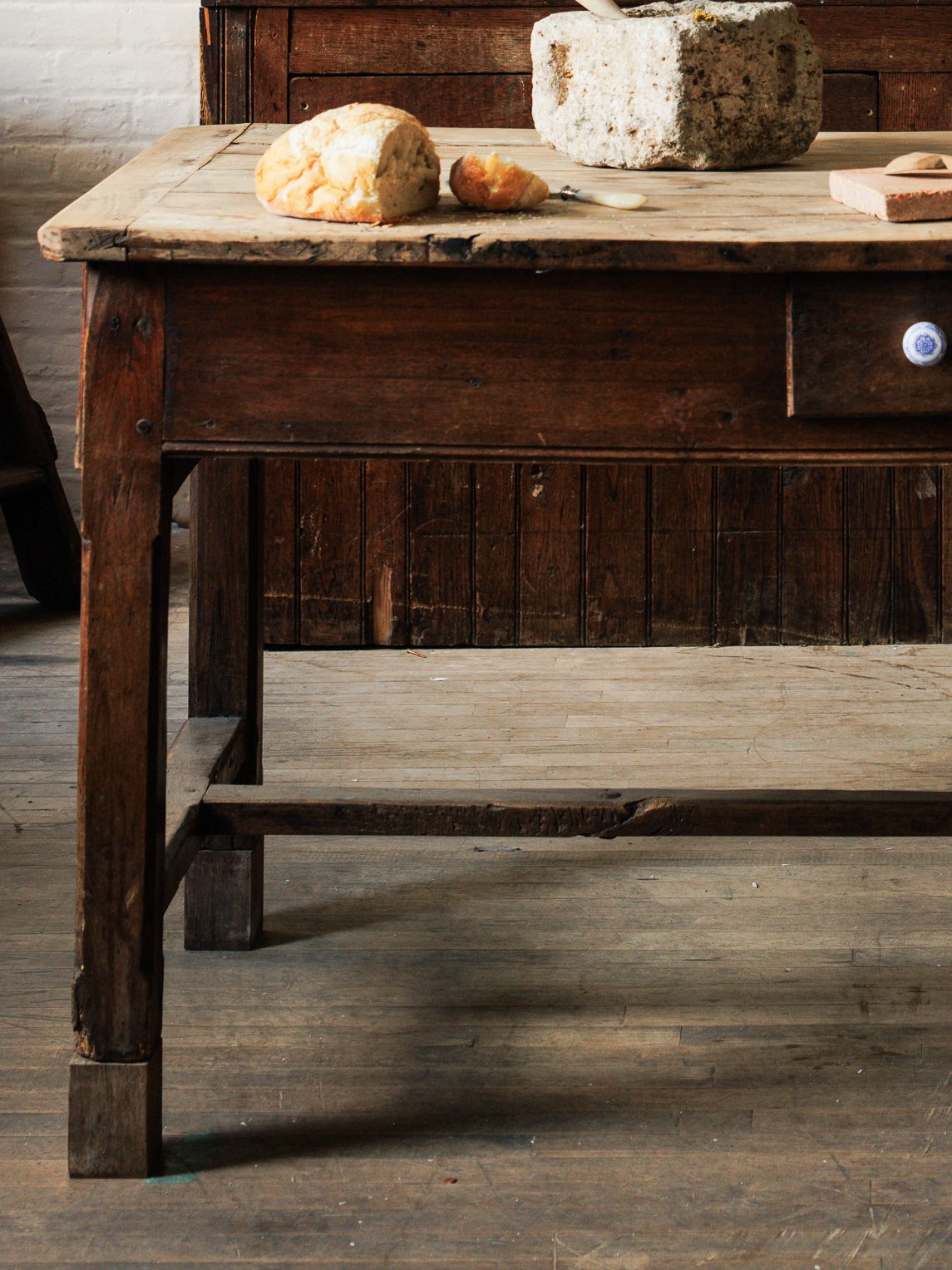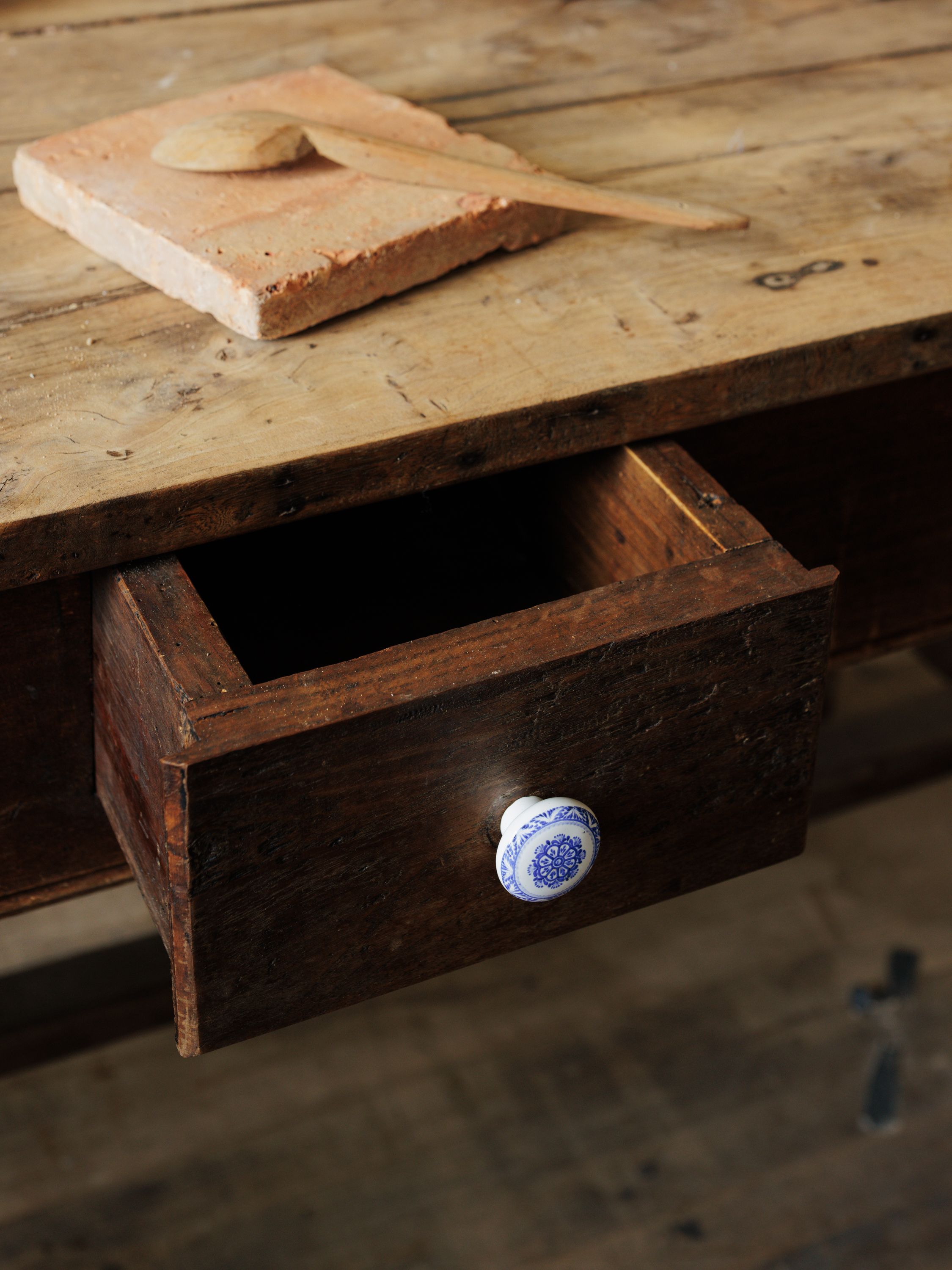 You asked for it, and we delivered. Introducing the French kitchen island, with four drawers and a lot of character. Originating from the French Alps in the 19th century and crafted from dark wood, our favorite quirk of this beauty is her ceramic blue and white drawer pulls. A true one of a kind, exactly as pictured.