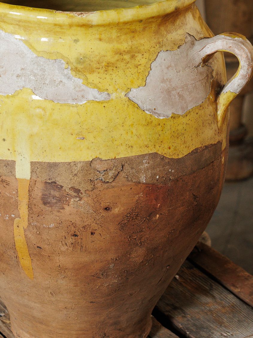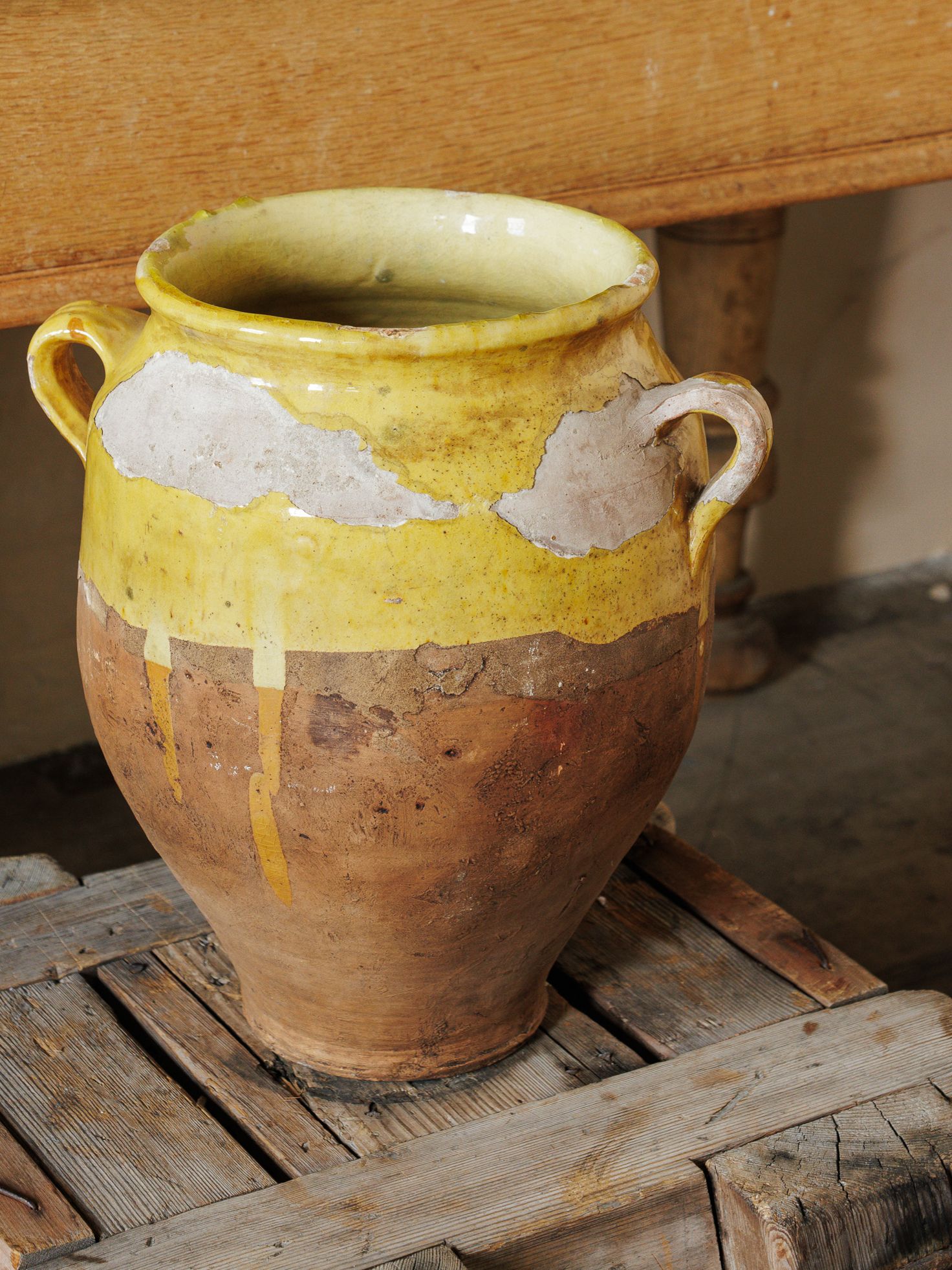 Once upon a time, in old and busy French kitchens, confit pots were essential for preserving rich foods like duck confit. Derived from the French verb "confire," meaning "to preserve," these pots feature a half-glazed top and unglazed bottom, perfect for covering in fabric and burying in cool cellars or the ground. These pots are becoming harder to find, and are often thought to be the king of all the antique french kitchen pots. Today, these charming pots are a welcomed addition to your kitchen window sills or playing the main characters on your dining, coffee, or entryway tables.