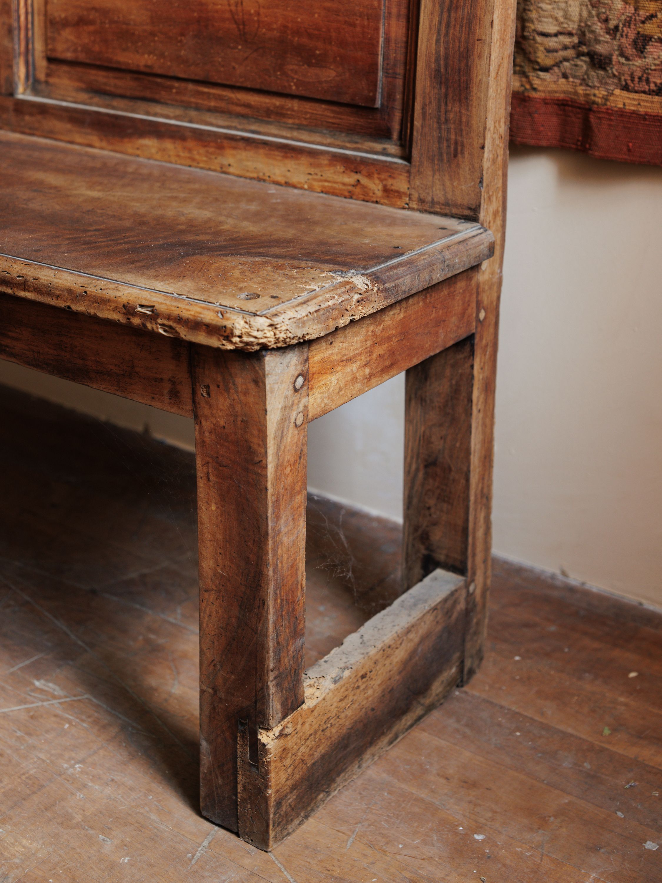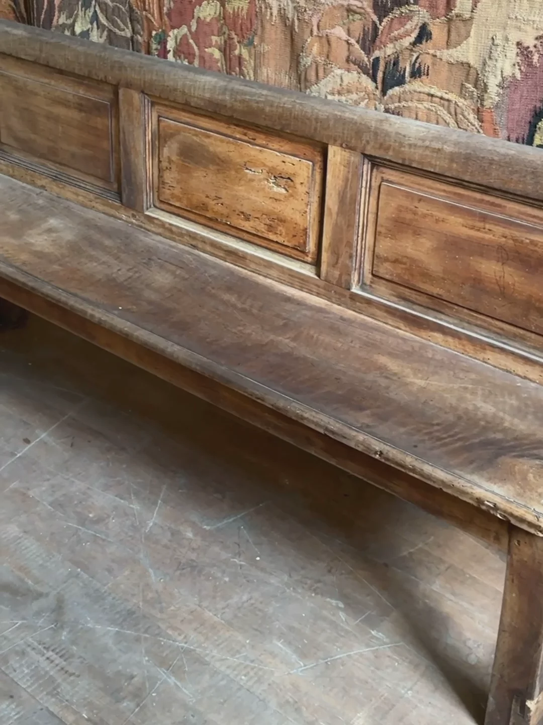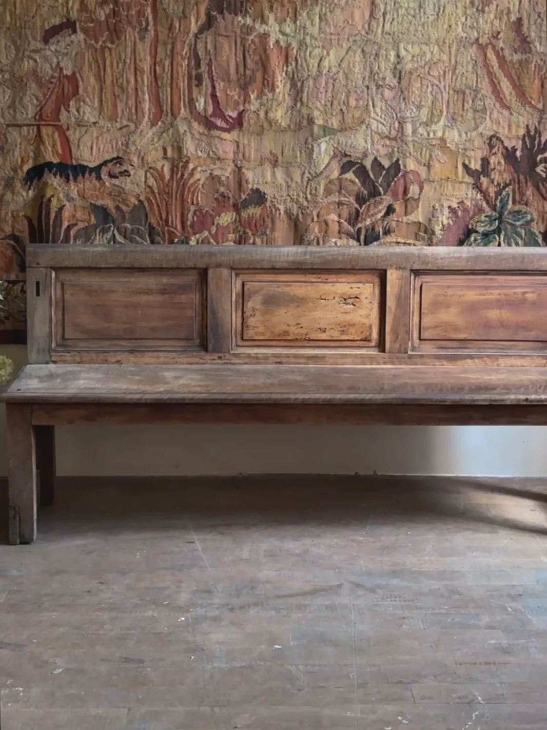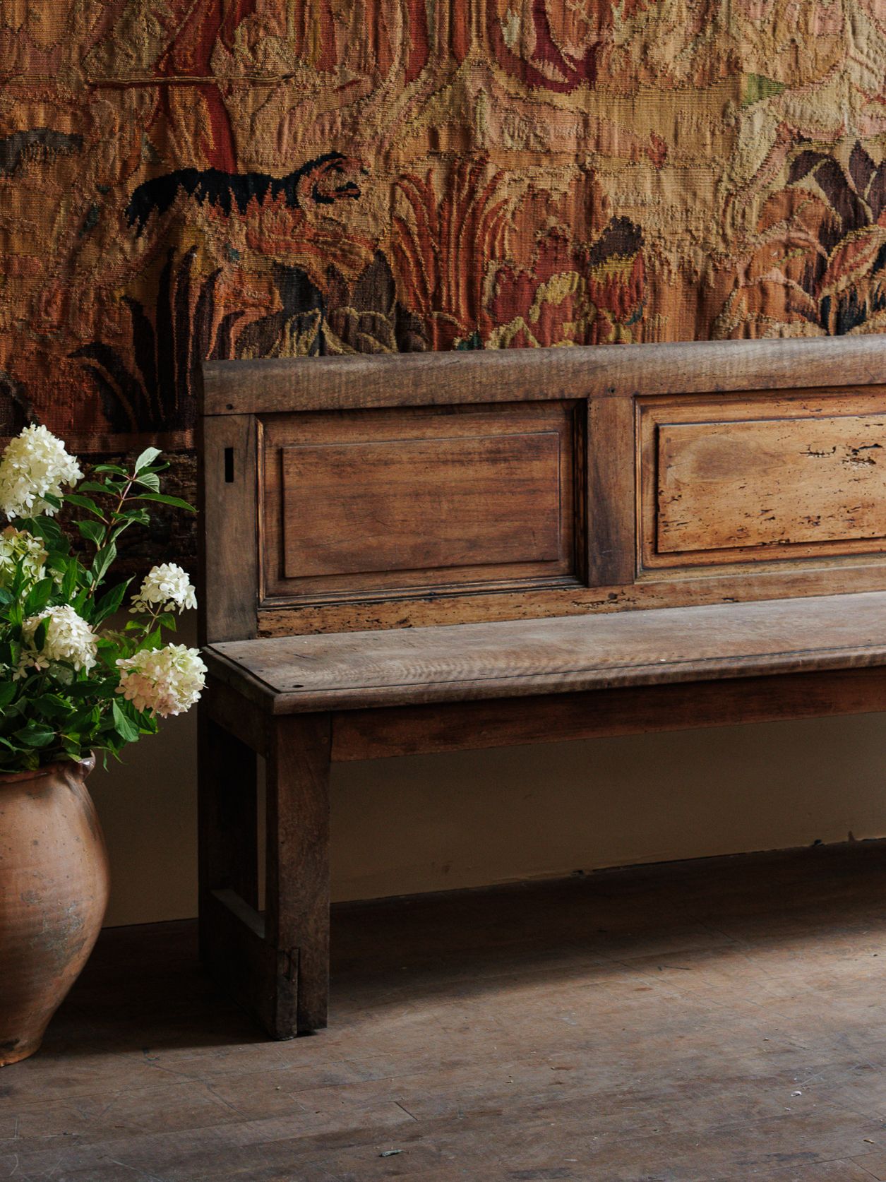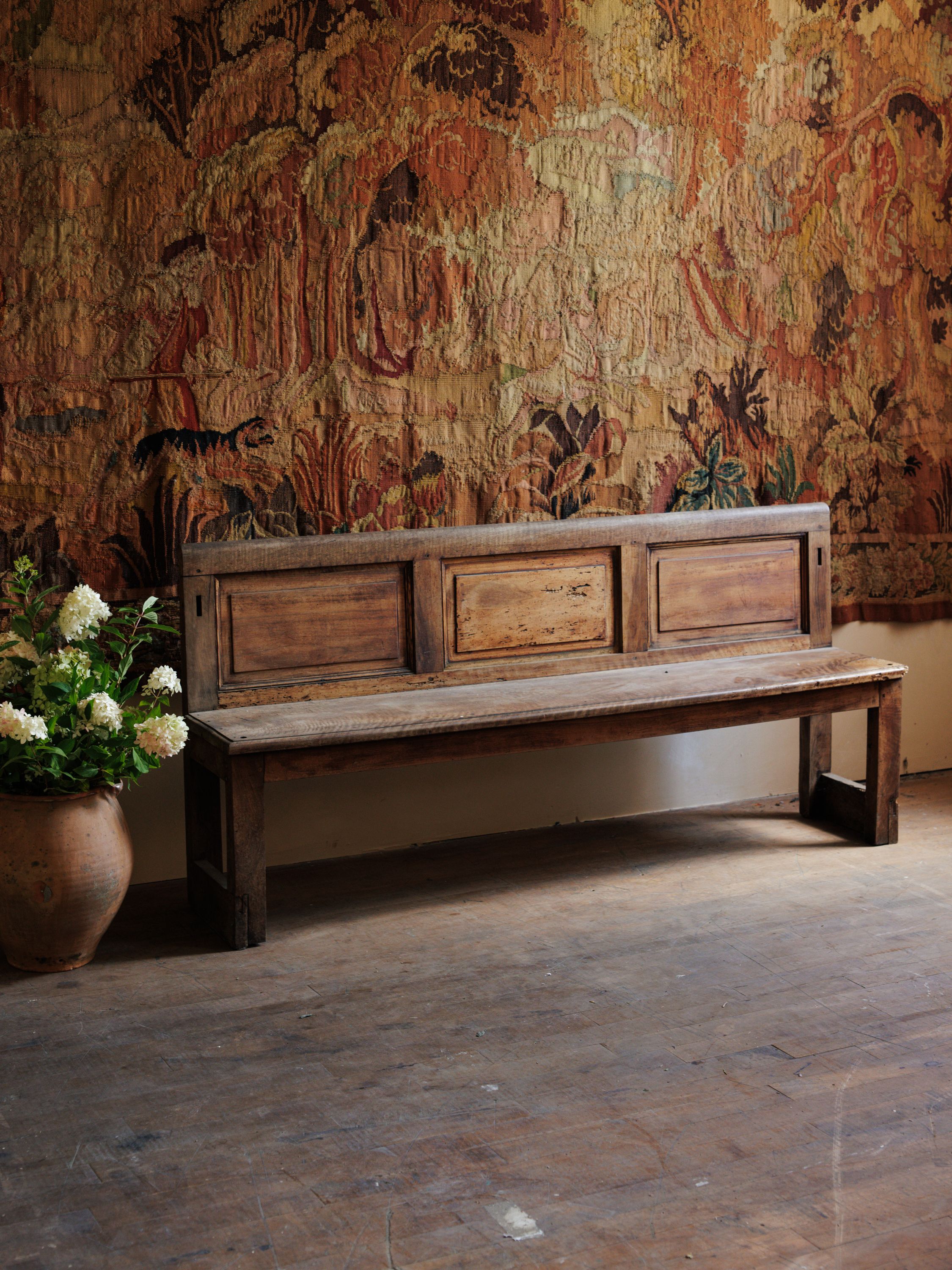 The perfect bench doesn't exis... This stunning example of French craftsmanship showcases solid wood, a weathered patina, and panels that hint at a life well-lived. It’s the perfect piece for an entryway, bedroom or beneath a window, inviting you to sit and lace up your shoes or set down shopping bags. Style it with books, well-chosen blankets or a woven basket nearby.