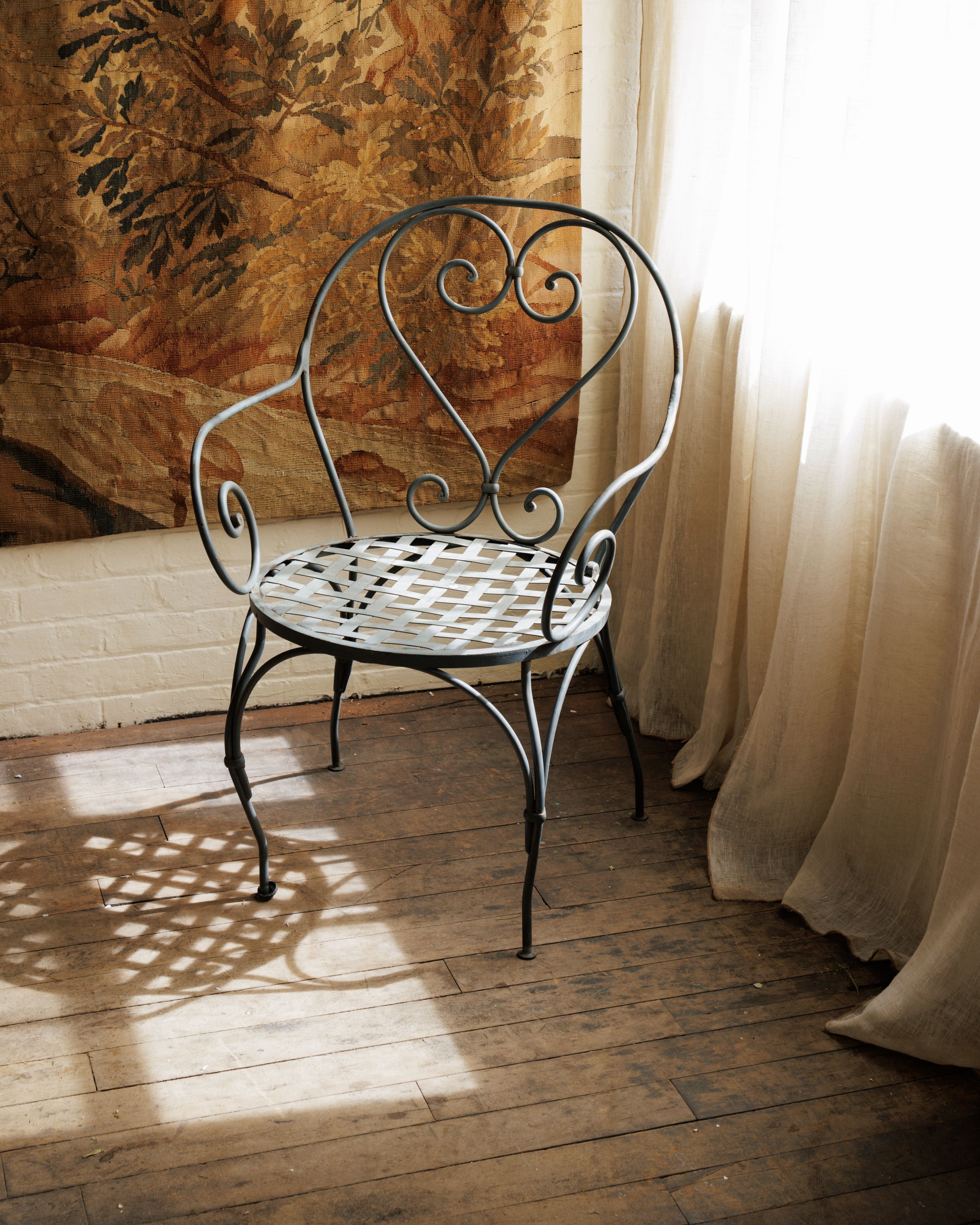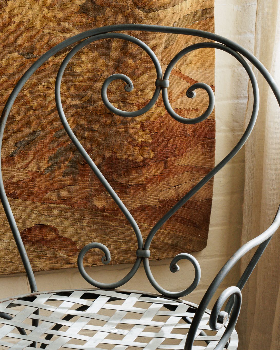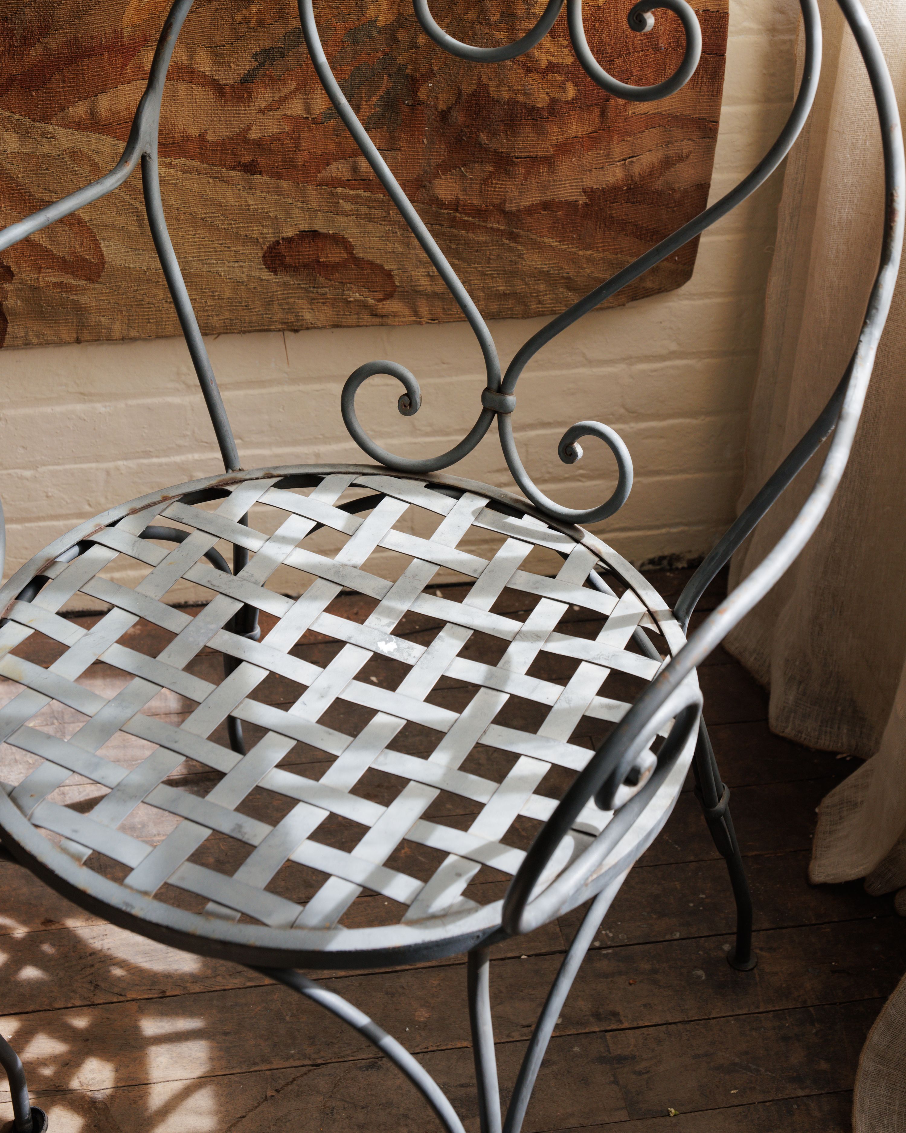 Found in Provence, but originally from Italy, these garden chairs have poetry in their curves. Weathered to perfection, and carrying the romance of a Parisian courtyard. Its delicate scrollwork and lattice seat invite you to linger—whether tucked beneath a bistro table, or nestled under a wisteria covered pergola in your garden. Sold individually or in pairs.