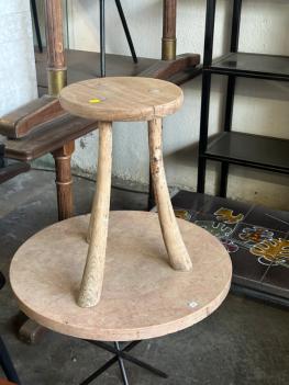 Le curved leg tripod stool is très magnifique, with gracefully curved legs and a hand-sanded light wood finish. Sylvie styles this as a side table for her morning coffee and notebook or as pedestal for her favorite Hungarian vessel.