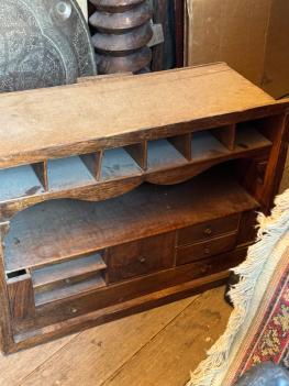 What is a desk without a sorting cabinet? Thats what we thought. This wonderful piece was discovered in Château St Pons and features a small drawers and compartments designed for storing paper, letters, and writing essentials. Though the sides and back are unfinished, its functional elements remain intact, making it a charming addition for organizing a home office or adding character to a cozy study corner.