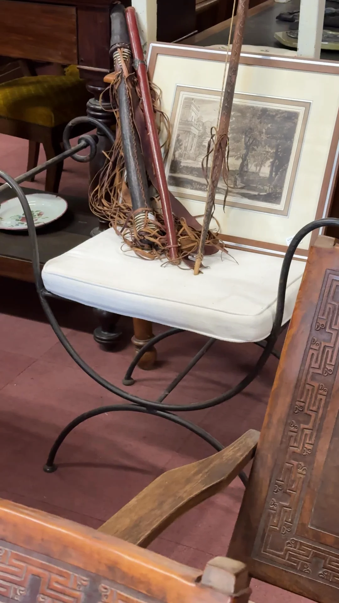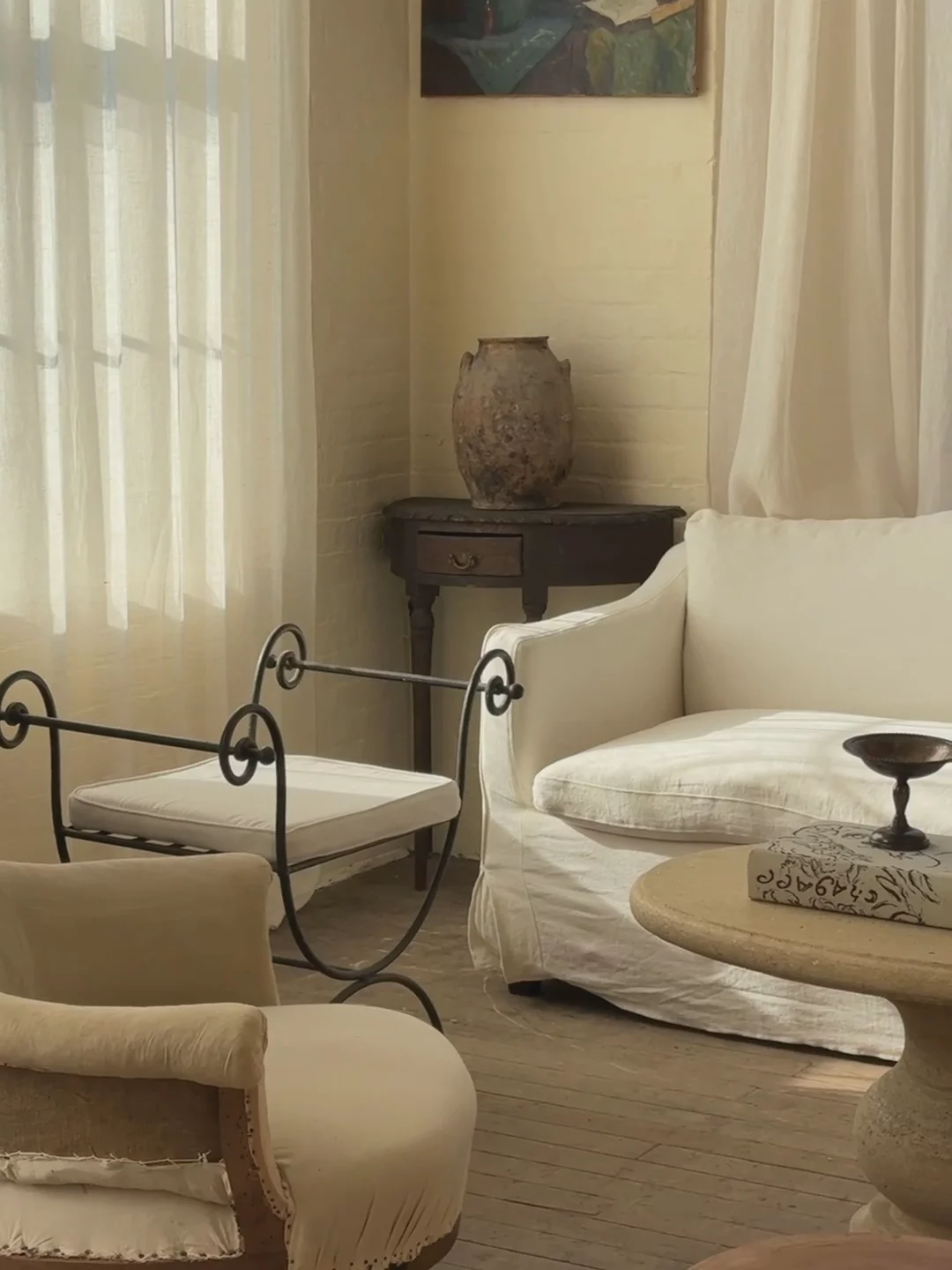 We'll help you pick your jaw off the ground. This mid-century wrought iron beauty, found in Pézenas, is the perfect mix of sculptural intrigue and effortlessly French. The iron has a rich, matte finish and is in exceptional condition. Sylvie loves to style this treasure at the foot of a bed, in an entryway, or as a living room perch.