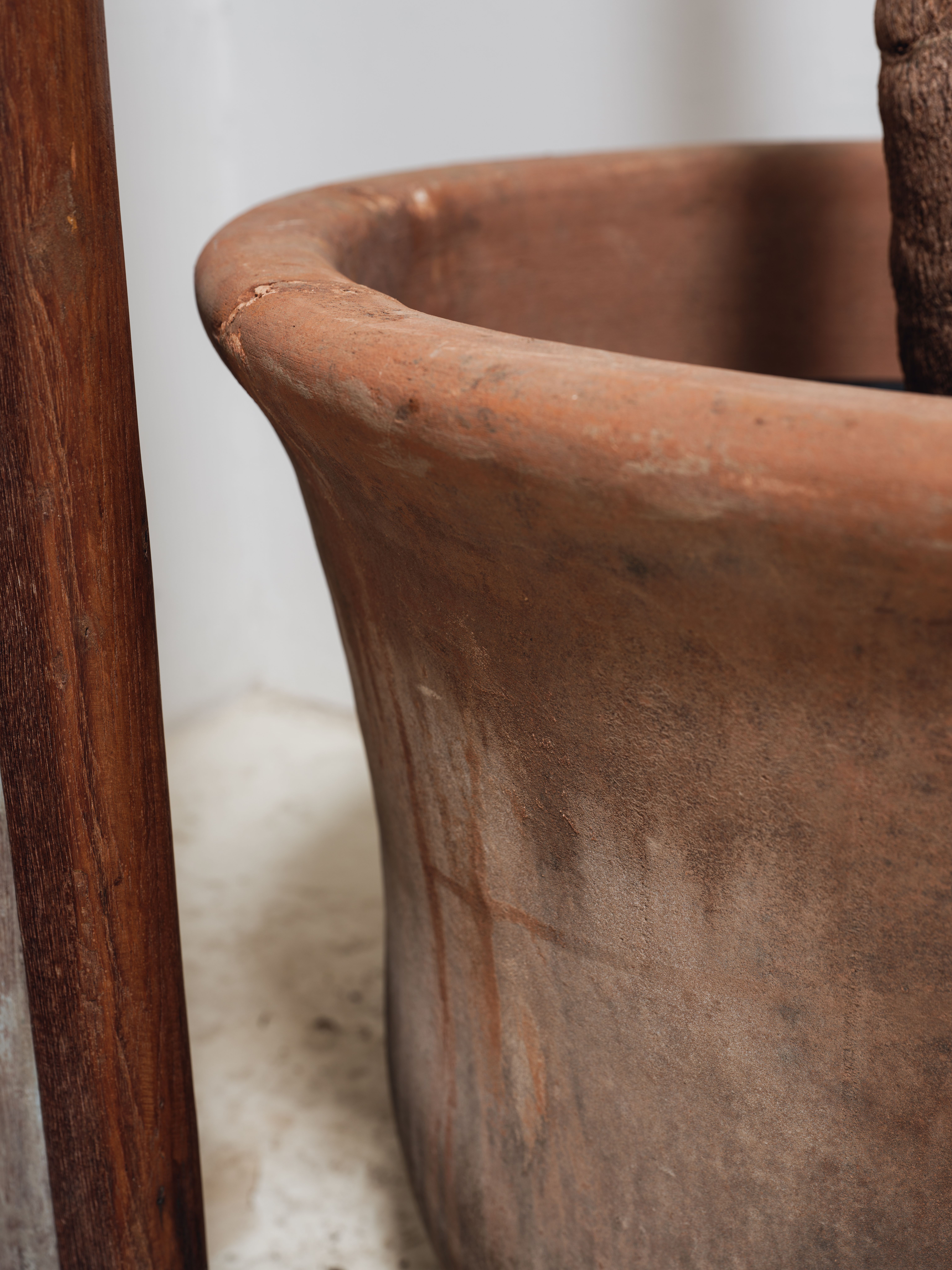 This vintage terracotta planter from Mexico is a beautiful and versatile garden piece that also will turn heads inside. Crafted from traditional terracotta clay, this planter showcases the rich artistic heritage of Mexican craftsmanship. The terracotta material offers excellent breathability for plant roots and helps regulate moisture levels, promoting healthy plant growth.