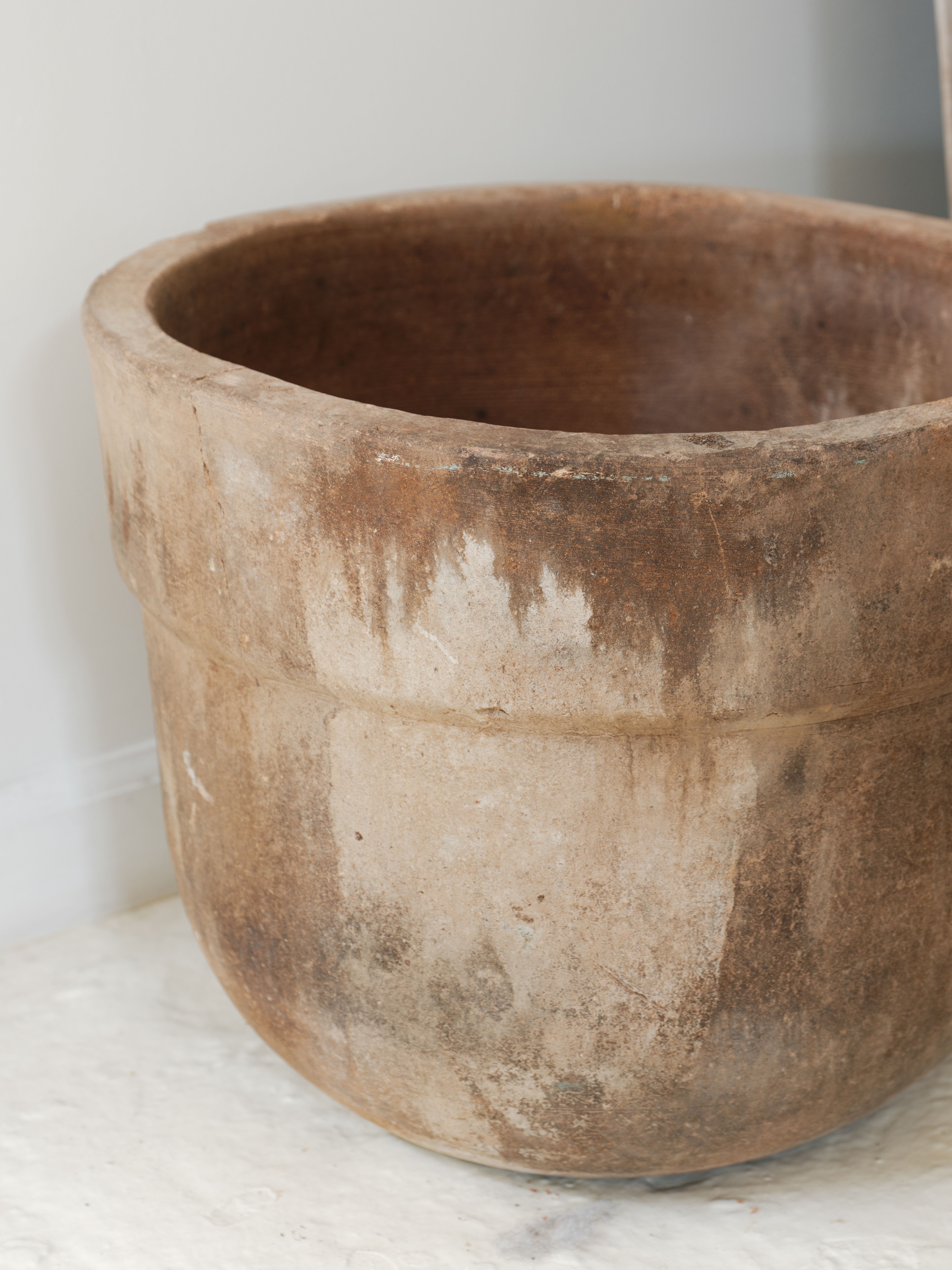 This vintage terracotta planter from Mexico is a beautiful and versatile garden piece that also will turn heads inside. Crafted from traditional terracotta clay, this planter showcases the rich artistic heritage of Mexican craftsmanship. The terracotta material offers excellent breathability for plant roots and helps regulate moisture levels, promoting healthy plant growth.