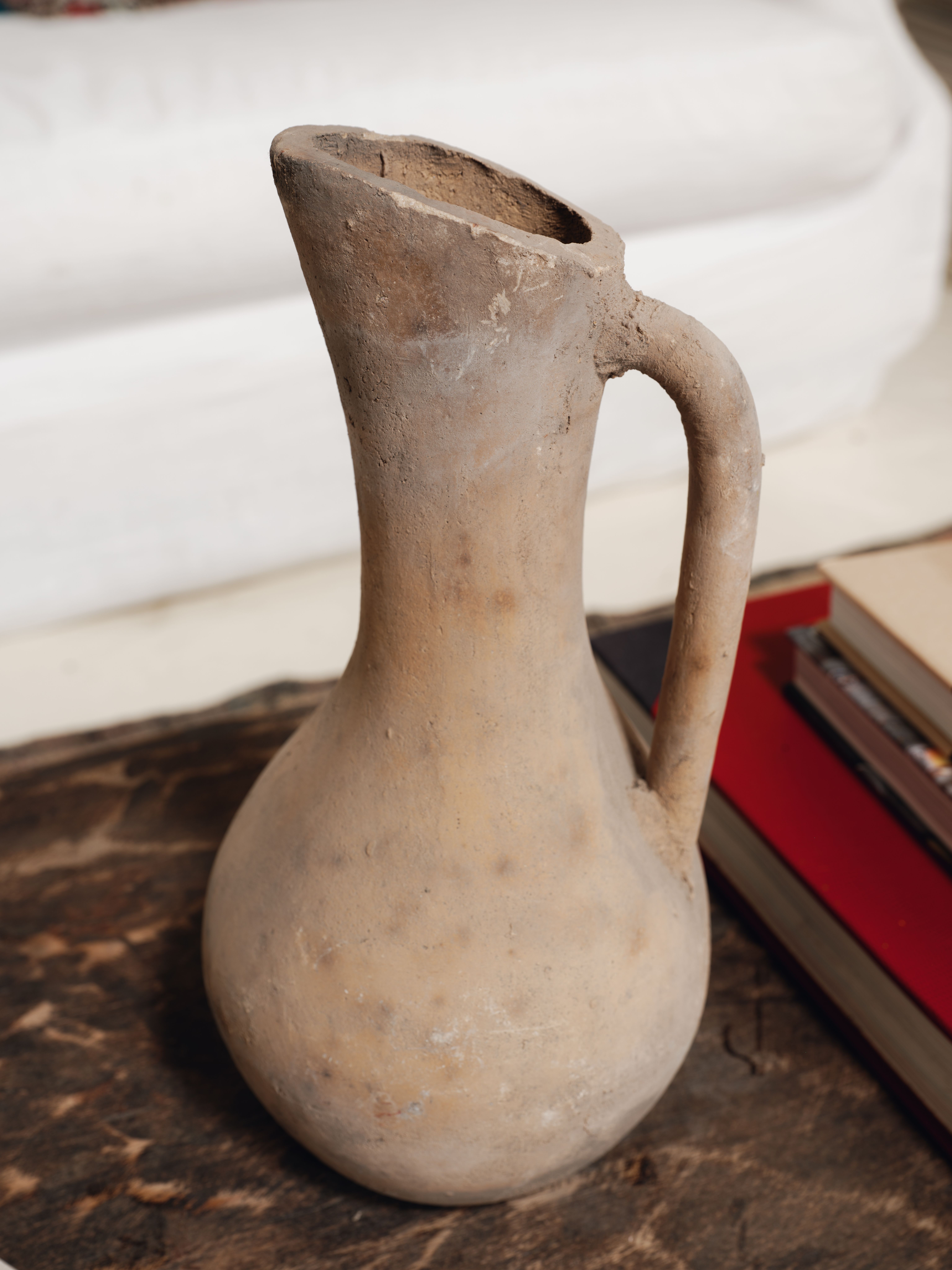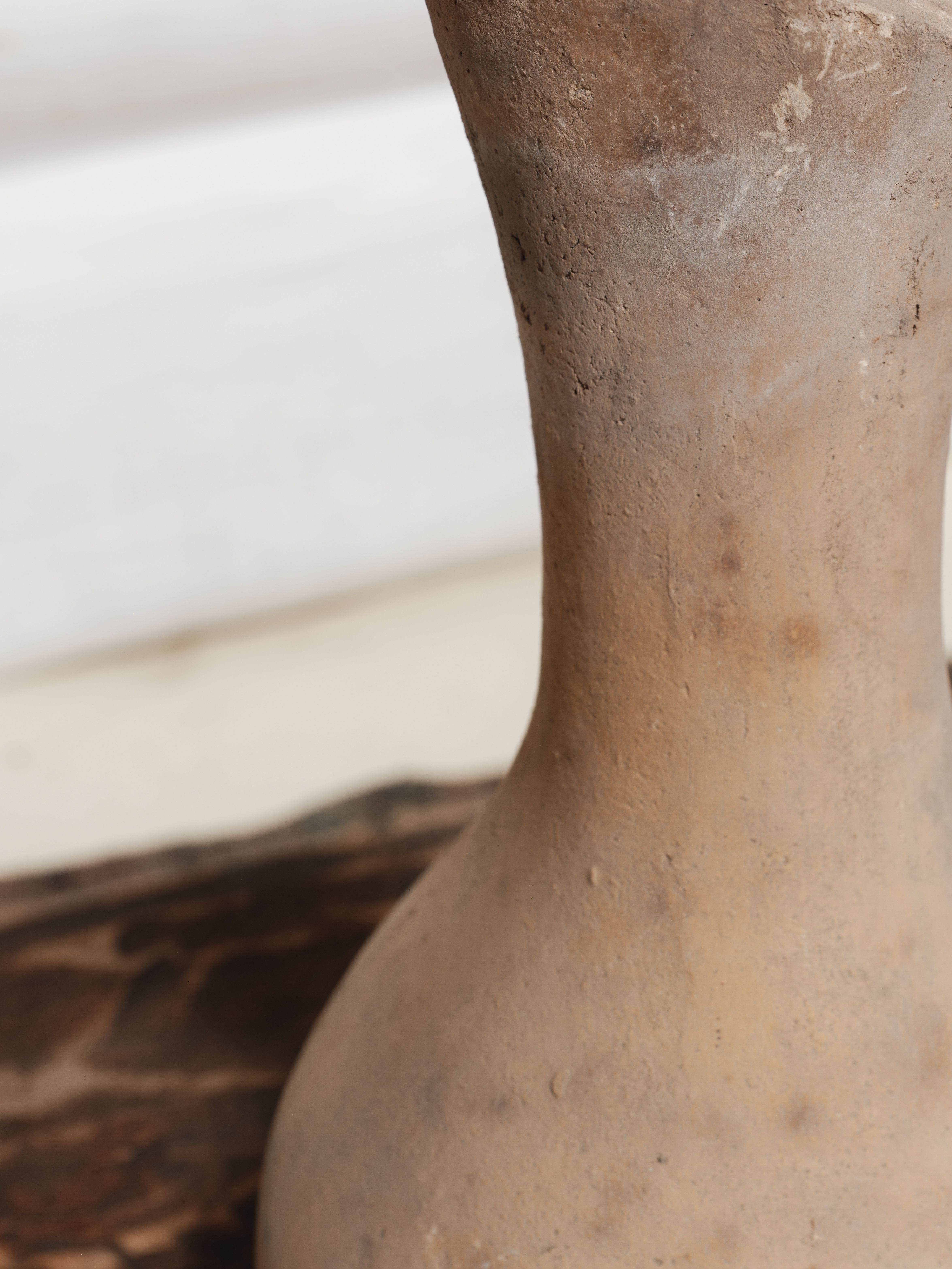 This vintage Mexican long-neck pitcher from Michoacán is a stunning testament to the region’s rich pottery traditions. Handcrafted by skilled artisans, originally used to store water. Perfect for displaying dried botanicals or as a standalone sculptural piece, it adds depth and character to any space. Each pitcher is one of a kind, reflecting the unique artistry and cultural heritage of vintage Mexican pottery from Michoacán.