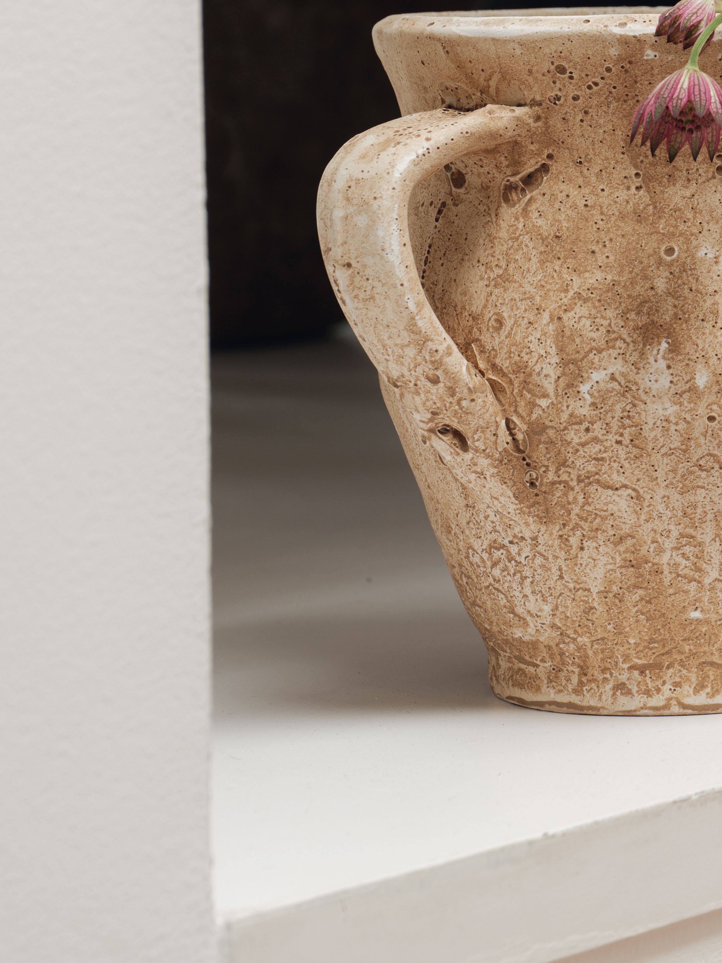 This antique mini one-handle terracotta vessel from Hungary was once used to store and preserve food, a staple in rural kitchens. Its single handle and slightly weathered surface reflect its utilitarian origins, while the warm terracotta tones bring a sense of grounded authenticity. Style it on a shelf or table as a reminder of its hardworking past, or let it shine as a unique statement in your home. It’s a piece with purpose and a story to tell.