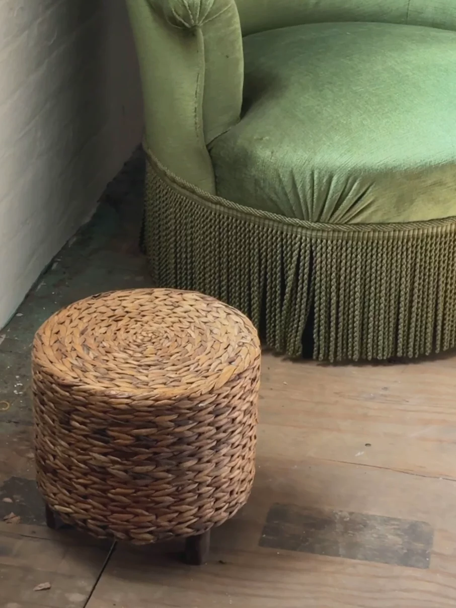 This mini mid-century wicker stool, features a charming woven texture and tiny feet. Its so cute you'll want to pinch its cheeks. Its compact size makes it perfect as a stand for your plant babies, or a footrest in any room.