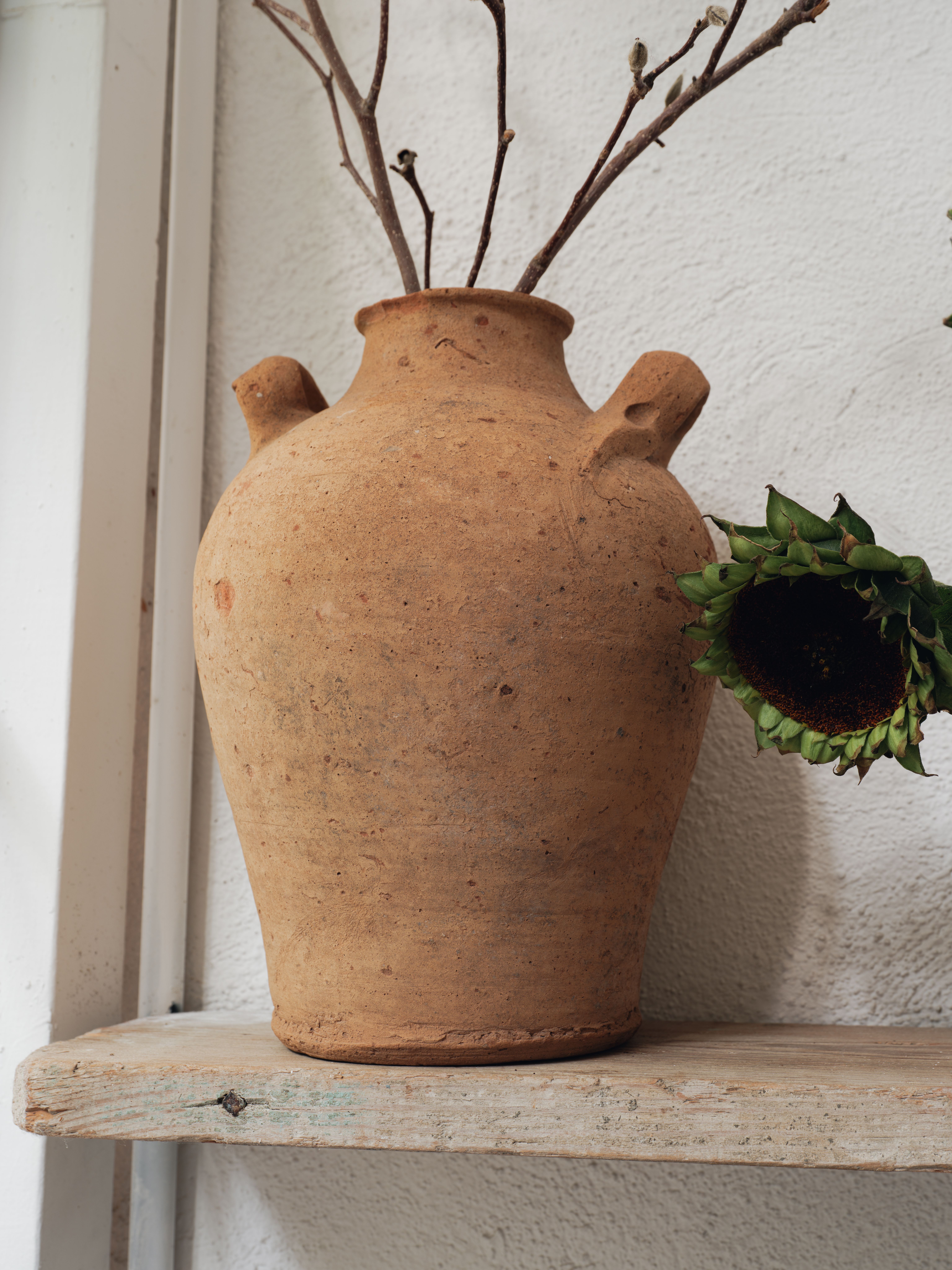 These antique Moroccan water jars were an incredible discovery during one of our expeditions in late 2019. Day after day, we searched for them, only to be told by vendors across Morocco that they had all but disappeared—most had been exported to Europe years ago. Just when we were ready to give up, we came across a man with a yard that had been locked up for years. When the gates finally opened, the thrill was indescribable. Inside, we uncovered not only jars once used to preserve dates and olives but also these beautiful water jars, each carrying the weight of history and tradition. Exactly as pictured.
