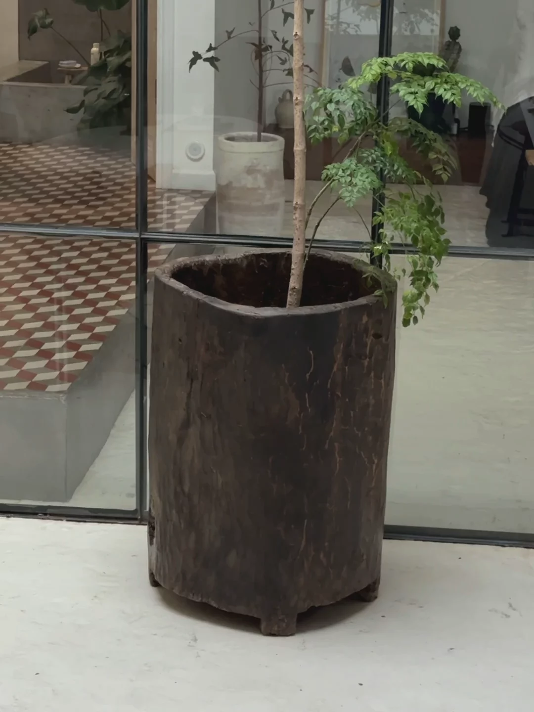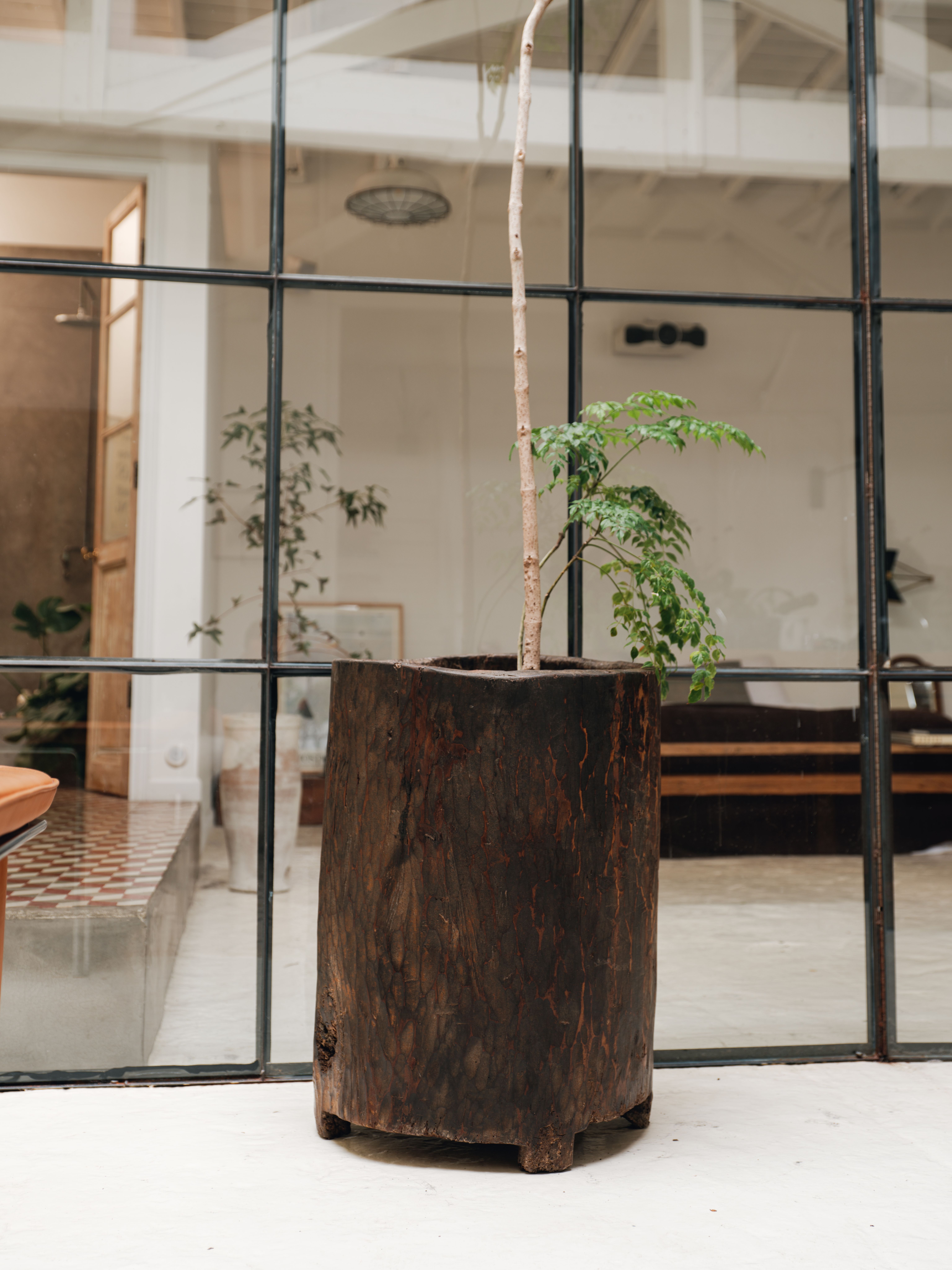 The show stopper. The Nagaland Planter, a truly hard to find gem, is hand-carved from a single tree in the enchanting hills of Nagaland, India. Originally thought to be used as rice and grain storage, this planter’s rugged, rough-hewn texture speaks of ancient forests and the hands of skilled tribal artisans. Exactly as pictured.