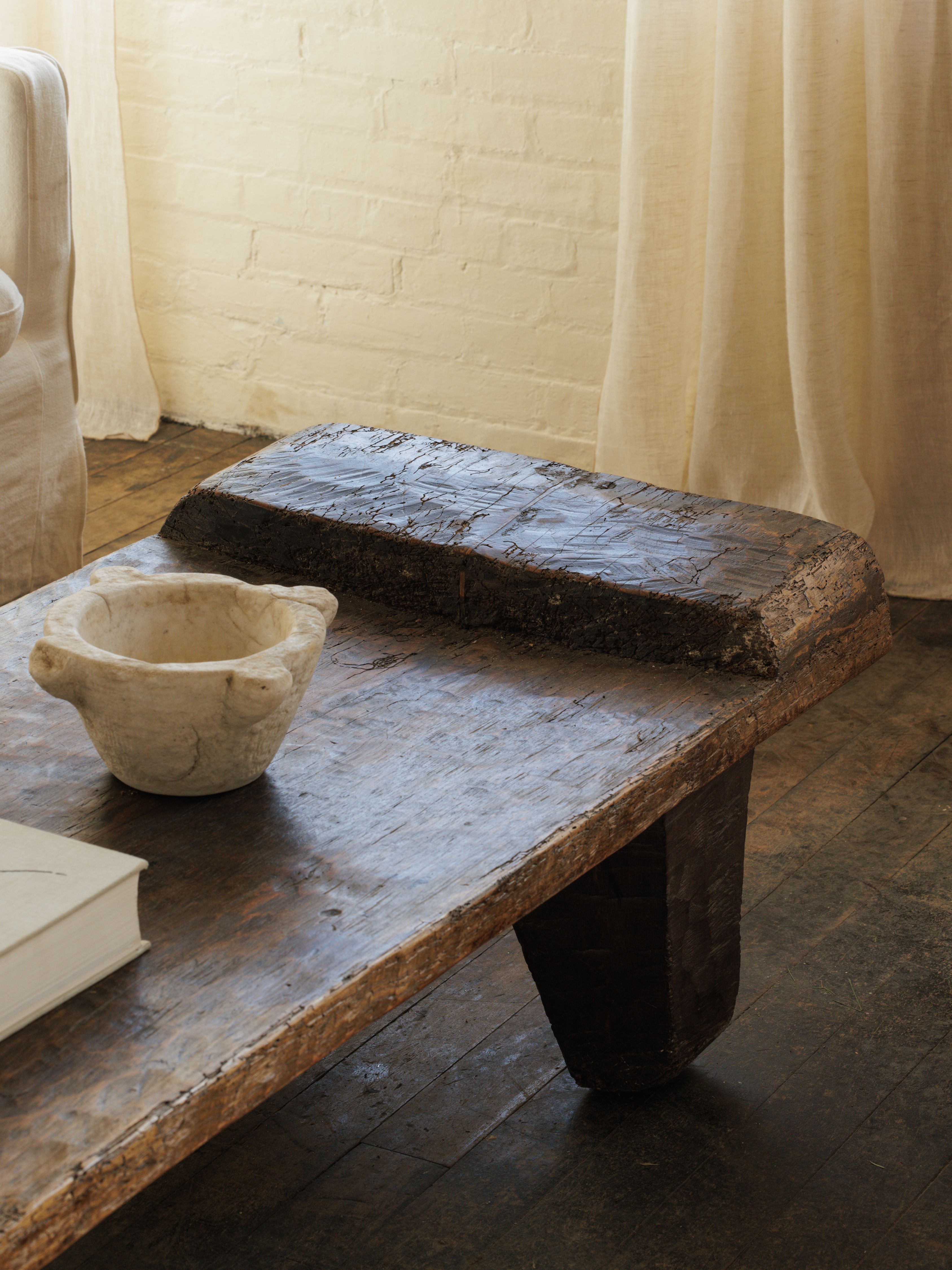 A capsuler furniture collection must include a Naga Table. Step into the distant lands of the Nagaland tribes in India with our most beloved hand-carved solid wood table, a piece that was once used as a bed over 100 years ago. Featuring unique detailing, carved edges, and four sturdy legs, this piece is the perfect addition to your Wabi Sabi home. The texture of this find is truly one of a kind, and will bring your neutral home to the next level.