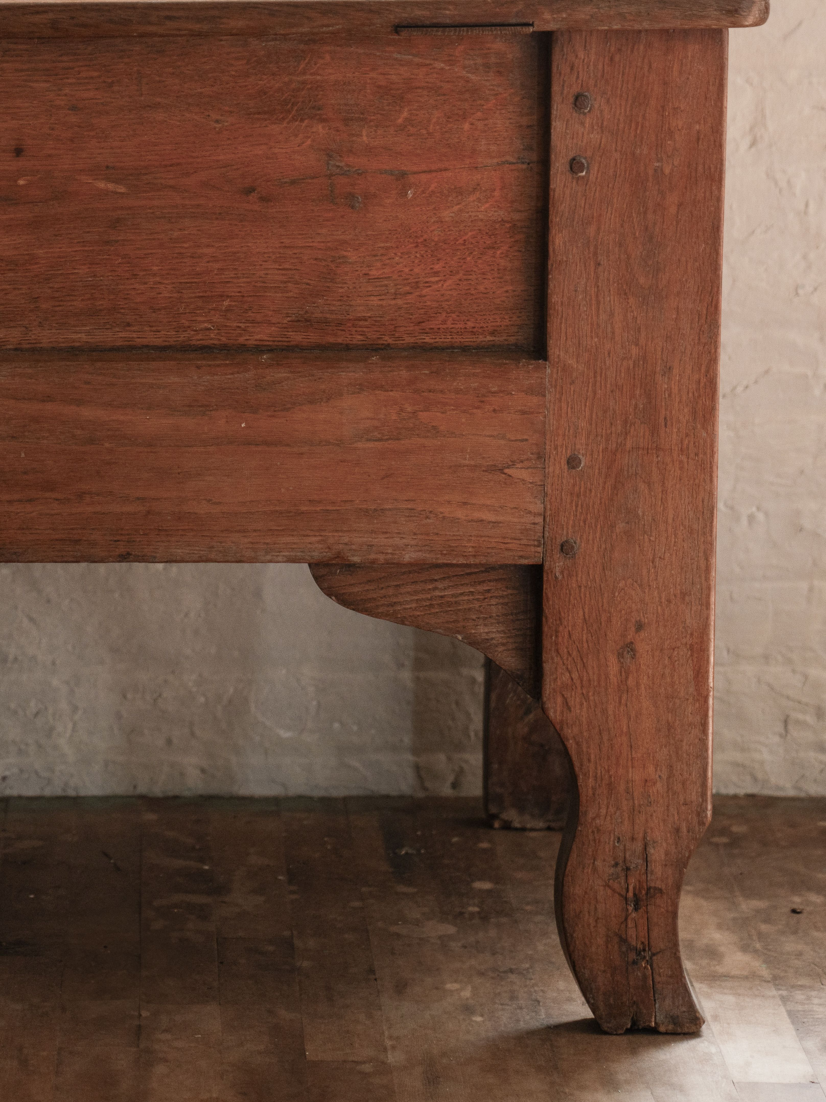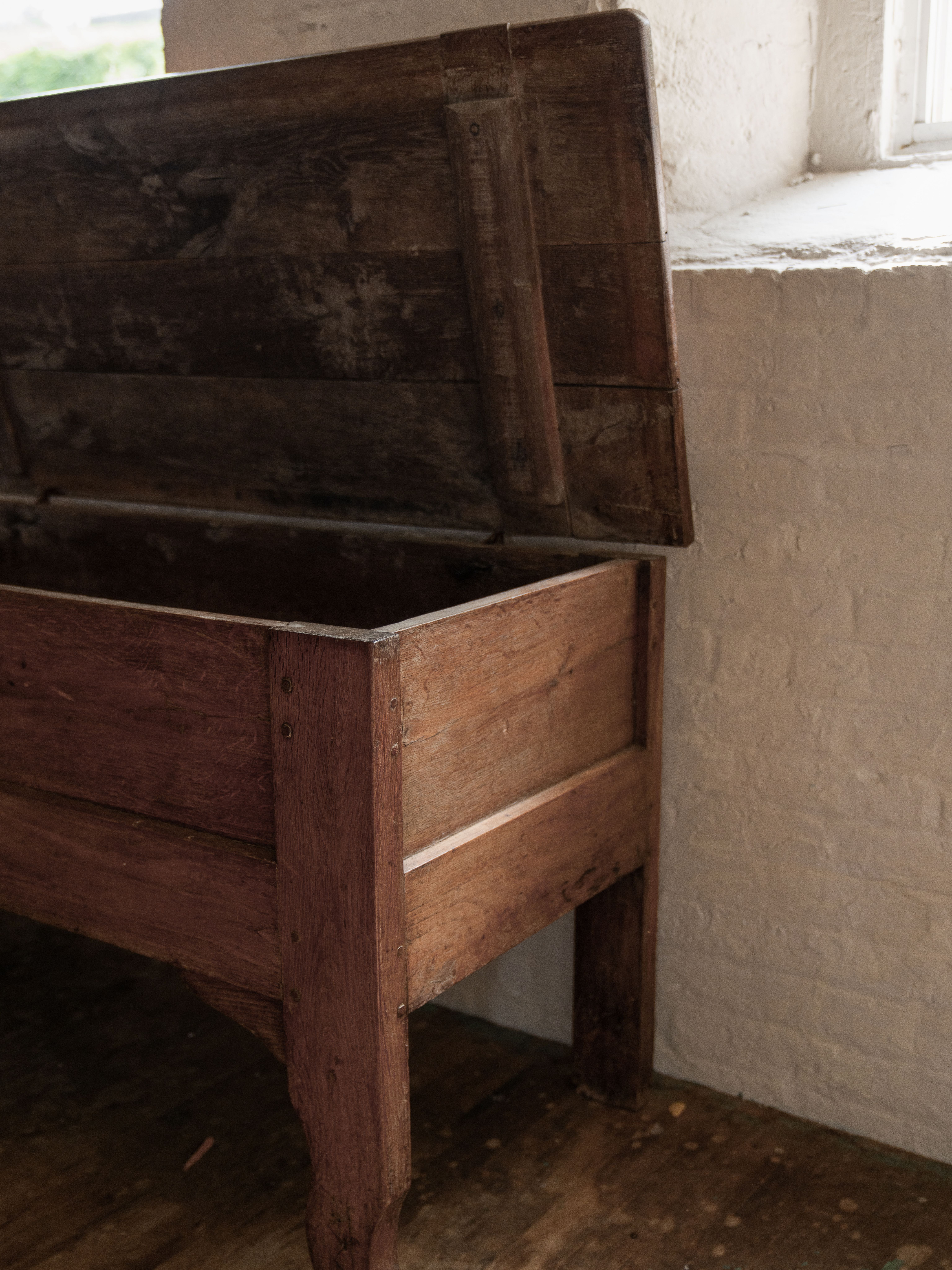 So, spoiler alert: you need this. An antique trunk that is also is a console? We couldn't believe it either. Dating all the way back to the 18th century, this unique and extremely rare trunk was originally used to store grains. The thing that makes this piece so special is the fact that she has legs, which gives her height and versatility. The original hinges are charming and function perfectly today. We hear that storage is always a struggle, and with this antique console we may have solved the problem. Sylvie envisions this piece sitting pretty under your television or across from your bed displaying your most prized possessions (and hiding the things that aren't meant for public consumption).
