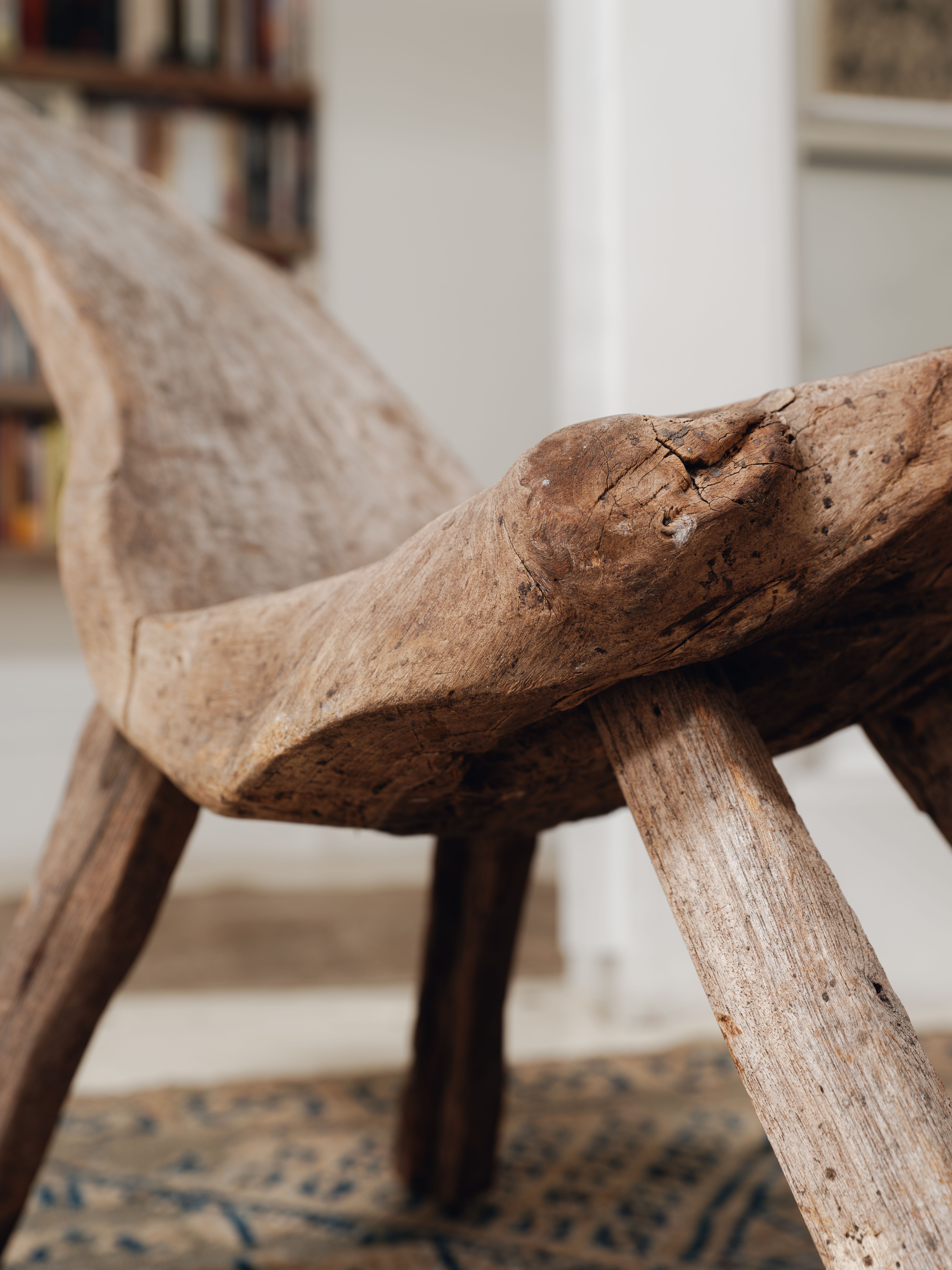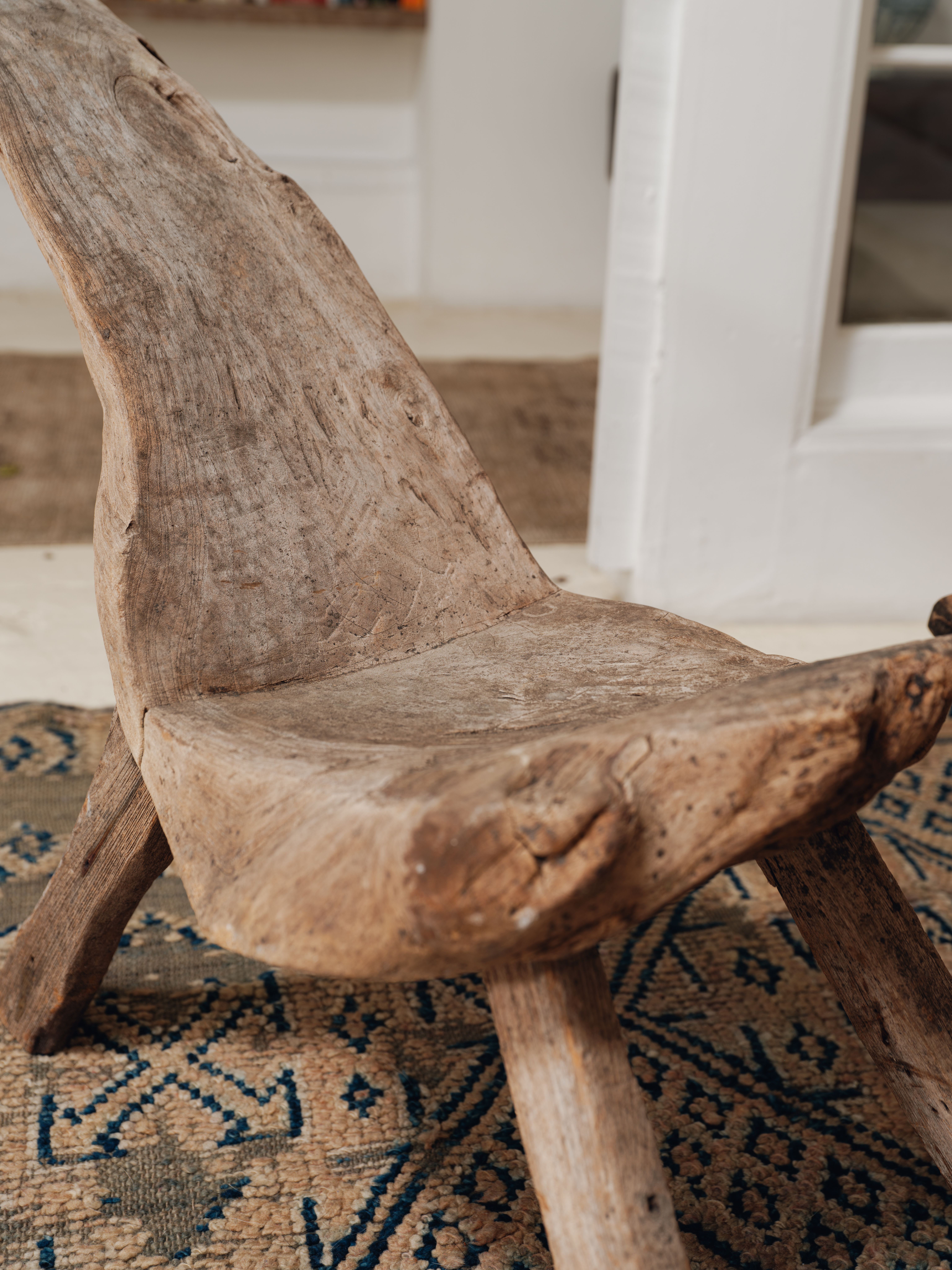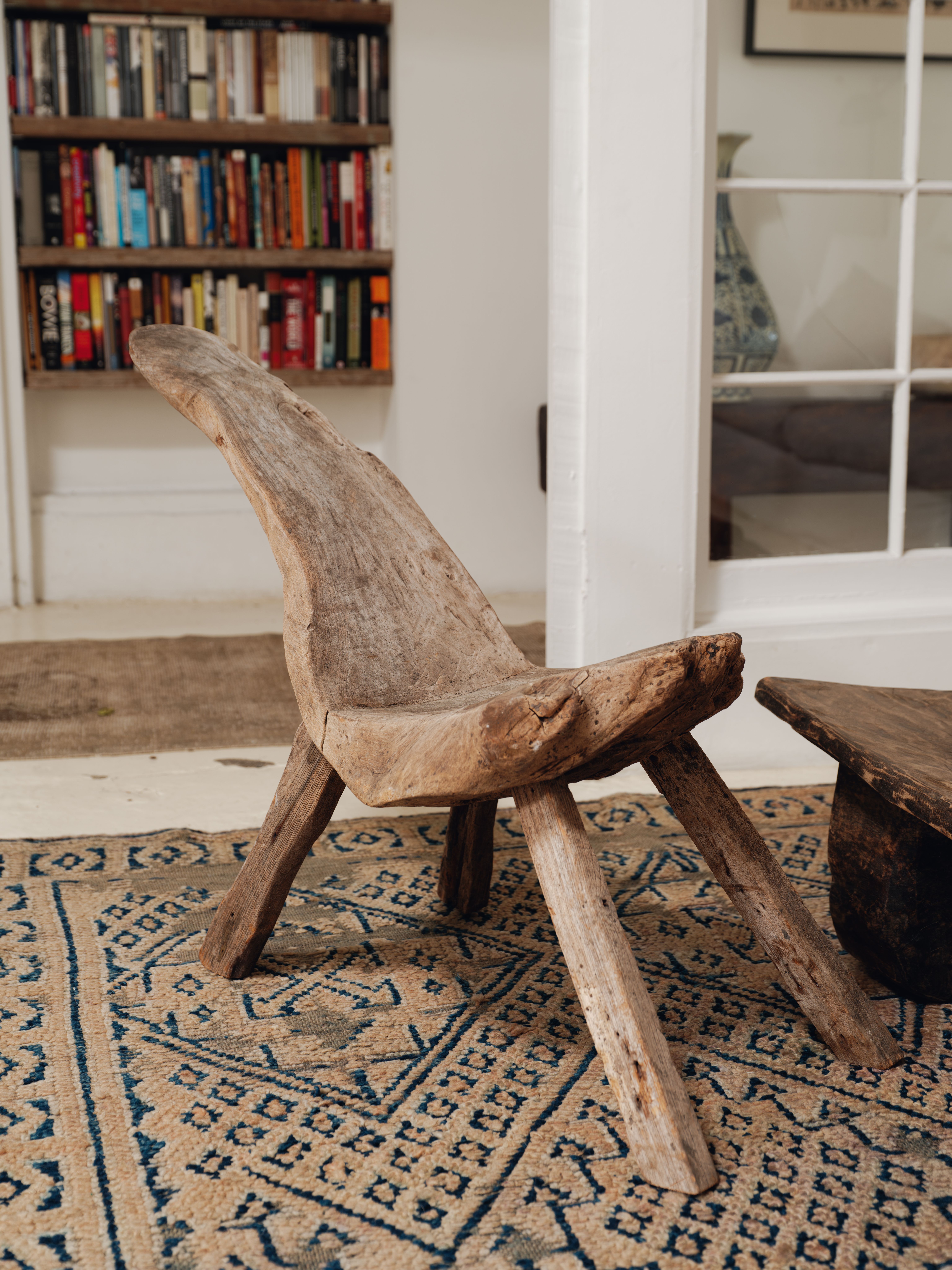 Hello, one-of-a-kind. This primitive chair, carved from teak root and sourced from the vast archipelagos of Indonesia, is a true unique treasure. Entirely unique, making it a coveted collector’s item. Perfect statement piece for any organic home, style it against your empty wall, entry way or as an accent chair in youjr living room.