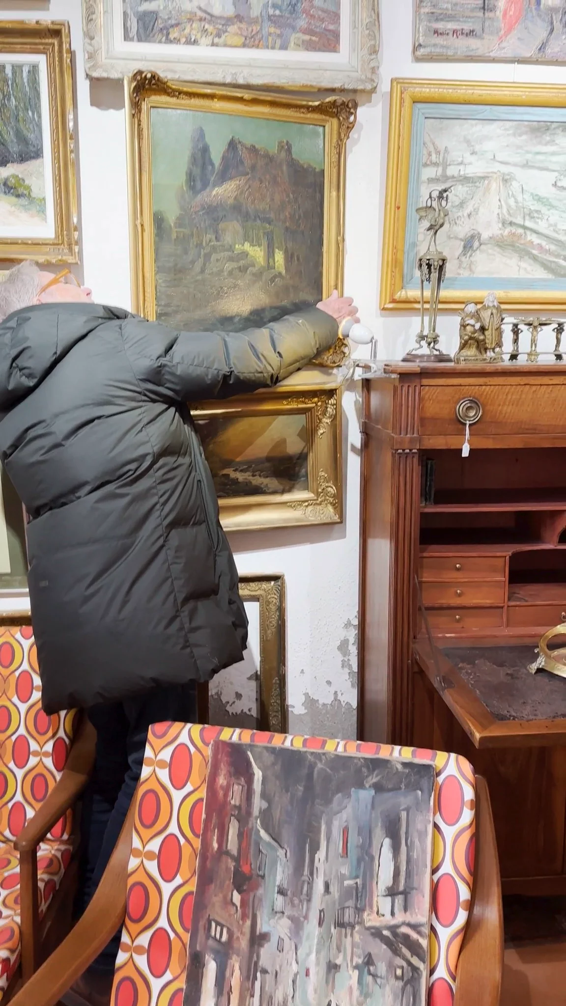 This charming painting, signed by Stellio, captures the moody, dark beauty of a rustic French cottage. Sylvie enjoys hanging it in her living room to add some life to her neutral home.