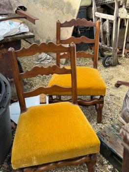 Real life Chateau chairs, are we dreaming? Hand-crafted in the 1800s, these Louis XVI ‘Sheep Bone’ armchairs from Château St Pons feature rich mustard yellow velvet upholstery, curved backrests, and elegantly shaped legs. Their sculptural design make them perfect for commanding the head of the dining table or serving as striking accent chairs in your living room or bedroom. Only one available.
