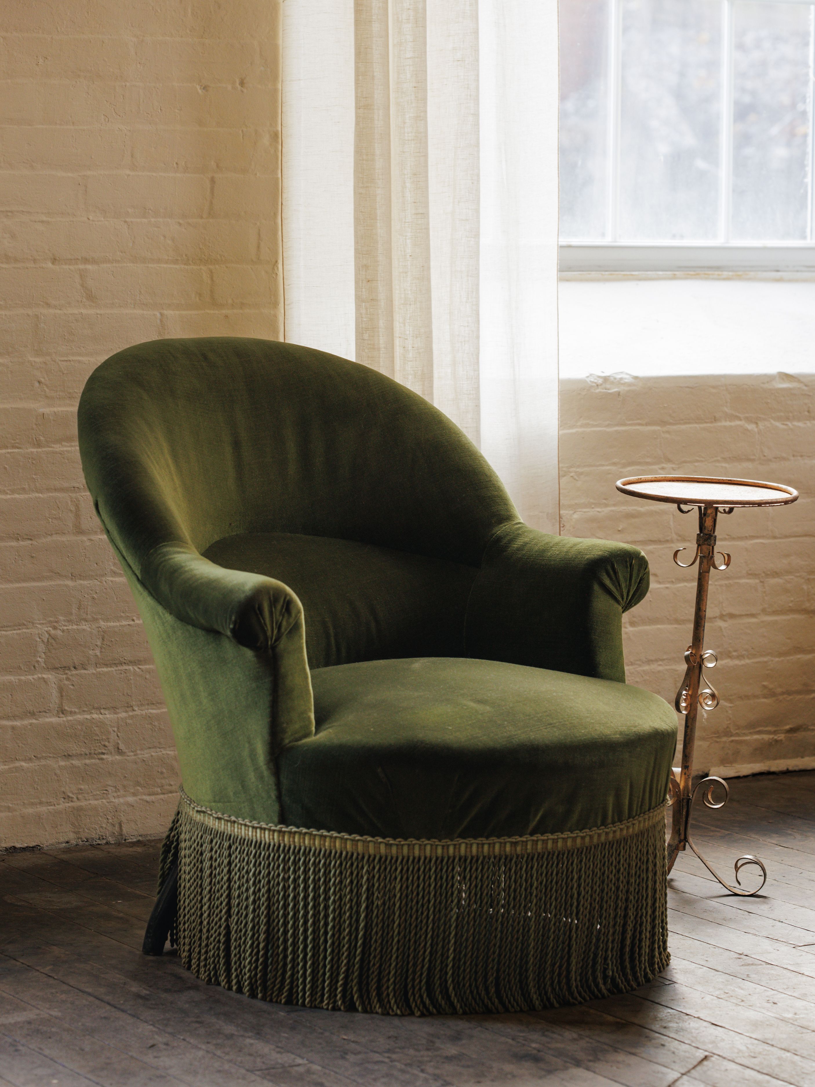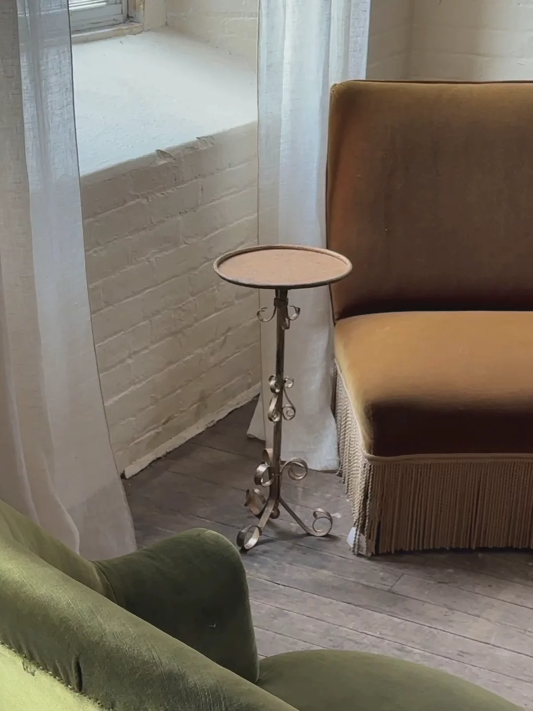 One thing about Sylvie, she loves a table that’s more than just a table. This antique Spanish martini table, found in Avignon, steals the show with its perfect patina from years of use in the Catalonia region. Perfect for a candle, a martini, or both, it’s the kind of piece that turns any corner into a moment.