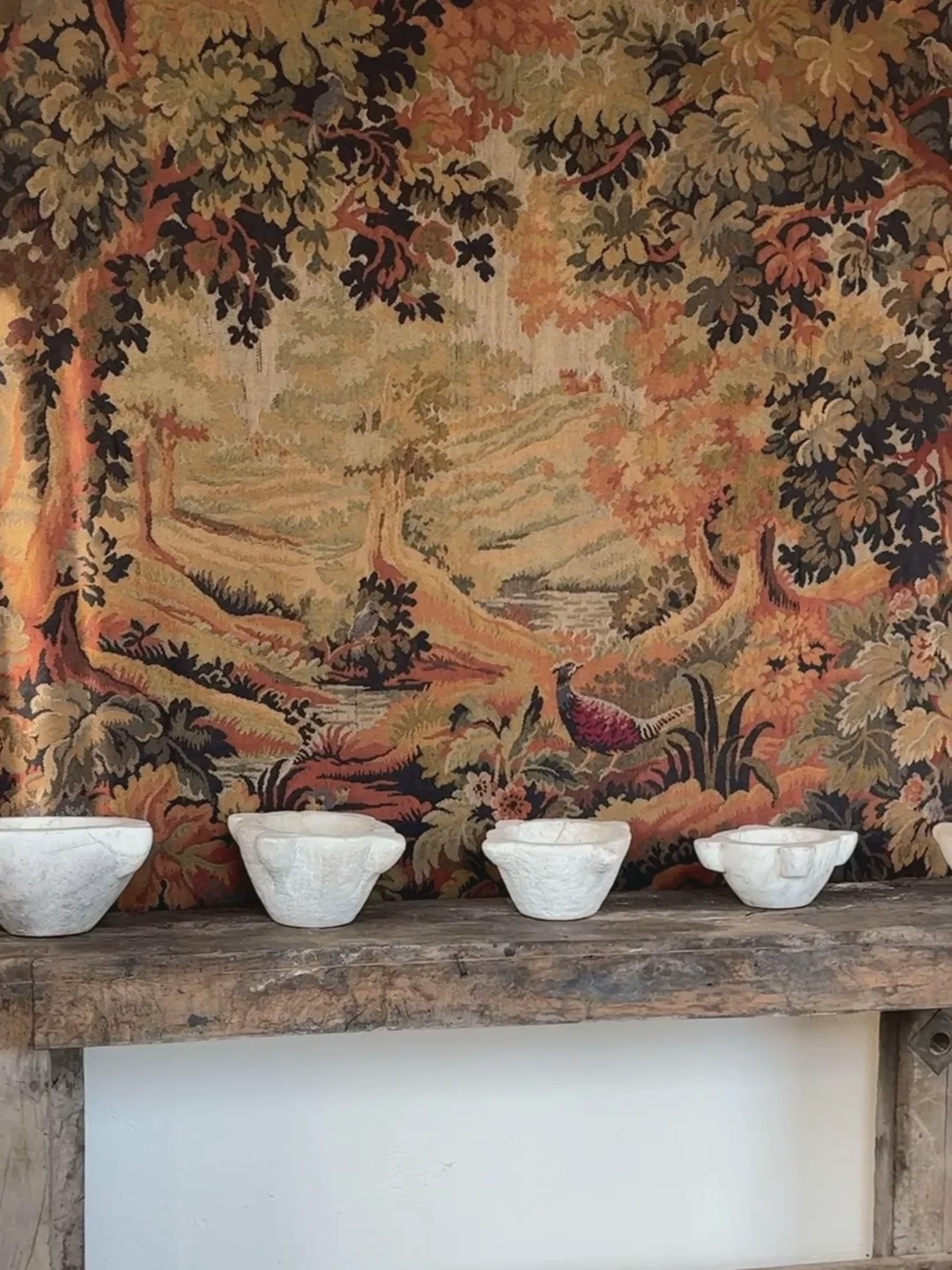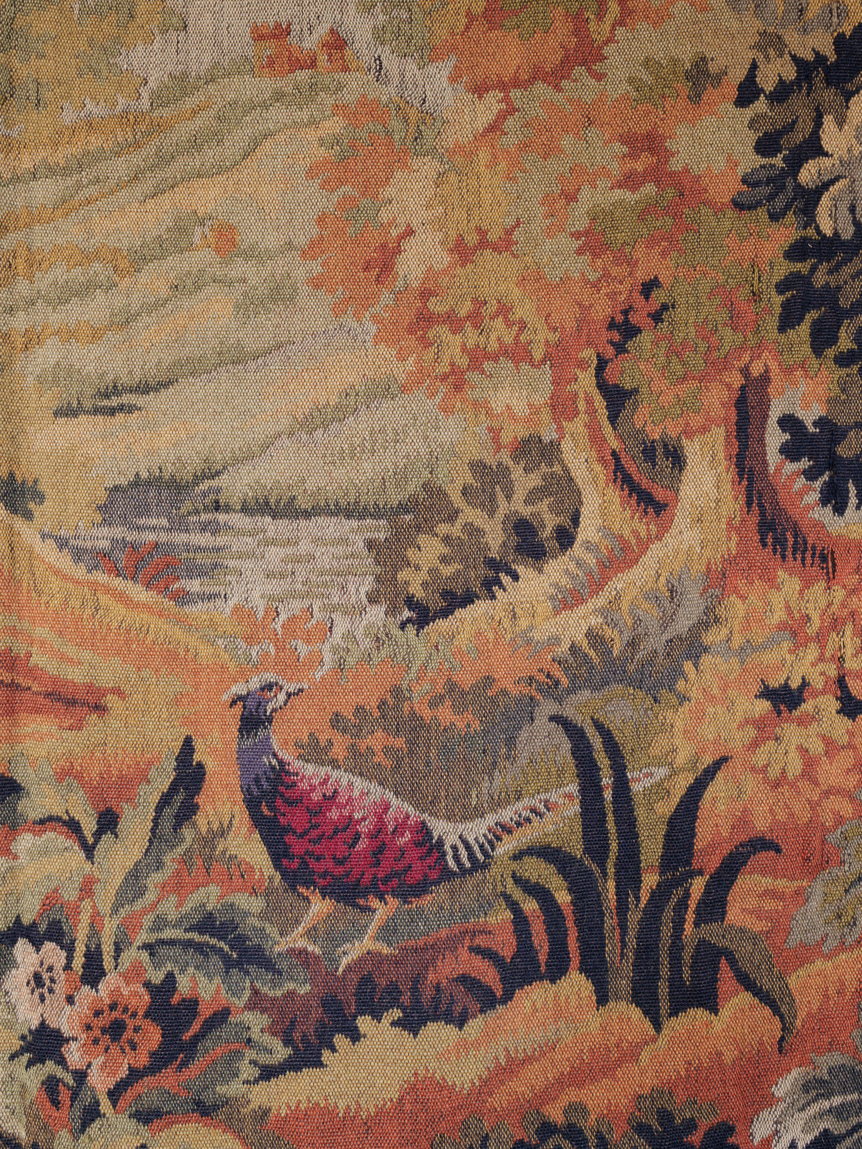 This tapestry feels like a walk through an autumn French forest, with its deep oranges, reds, and bronzes setting the mood. Featuring a regal pheasant among lush foliage, it’s the kind of piece that makes any room feel layered and lived-in. Sylvie loves it hung behind a couch, above a bed, or stealing the spotlight in an entryway.