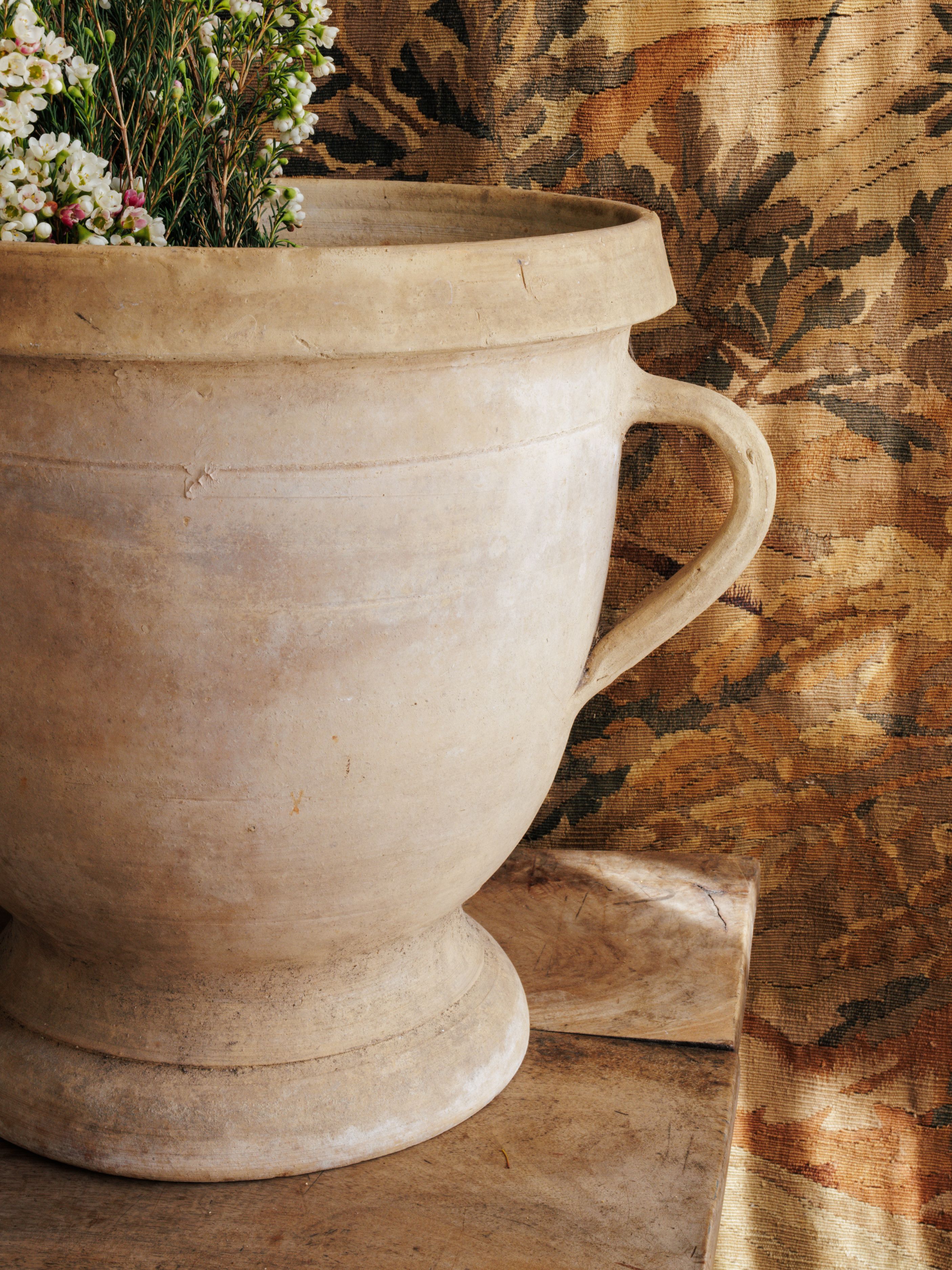Found in the bustling streets of Avignon, this Terra Cotta Castelnaudary pot immediately caught our eye. Hailing from the town of Castelnaudary, where it likely simmered countless cassoulets over a glowing hearth, it carries the soul of French cooking traditions. Its warm terracotta tone and sturdy form tell a story of shared meals and careful craftsmanship. A true piece of history, now ready to be used as a statement vase or planter for your organic home.