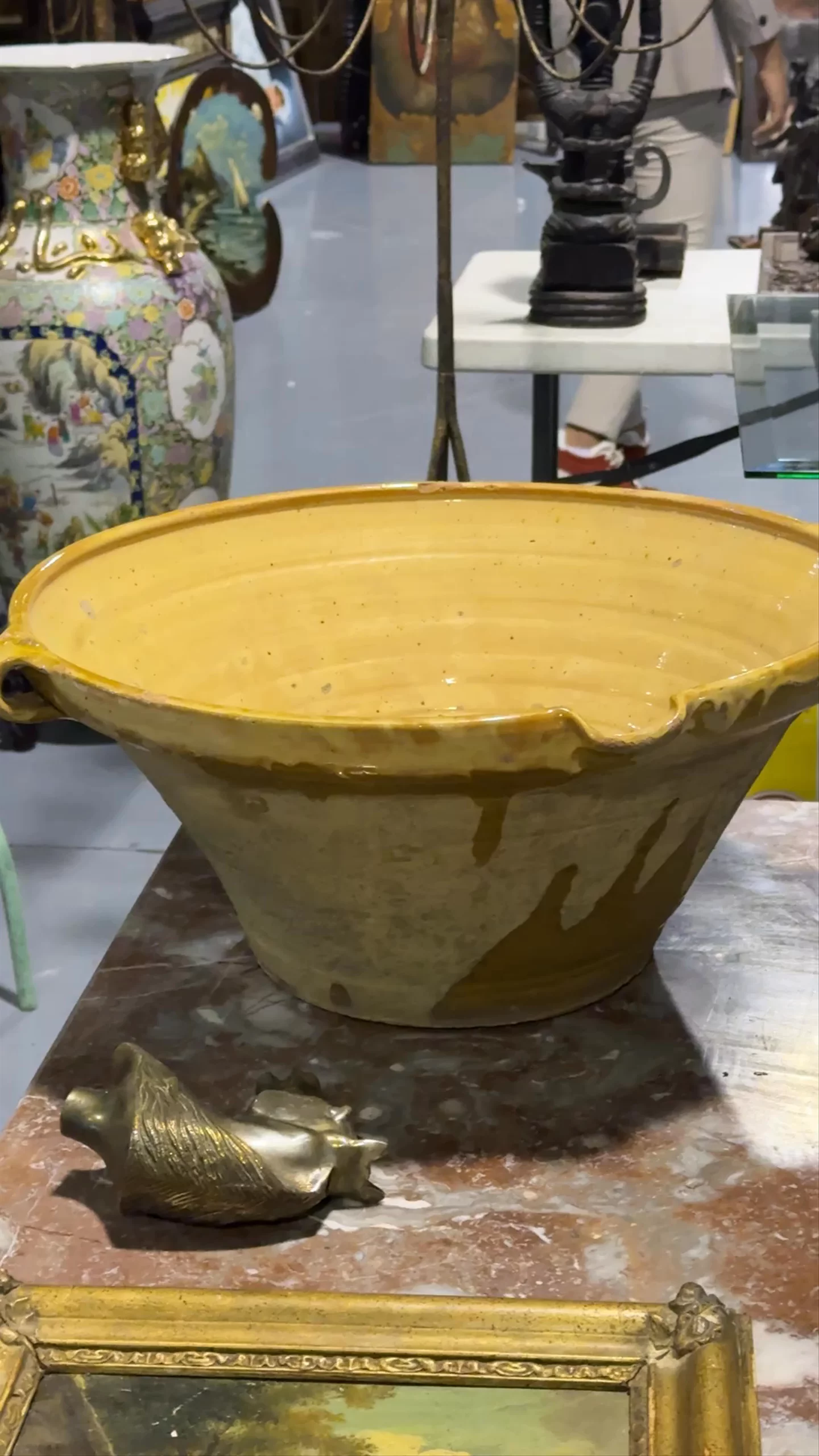 Oh, the French Tian Bowl. A charming antique piece with a storied past in French culinary tradition, originating in Provence during the 18th and 19th centuries. This oversized bowl was used for slow-cooking confits and vegetable gratins. Sylvie loves to style these as fruit bowls, table centerpieces and stand alone statement pieces.