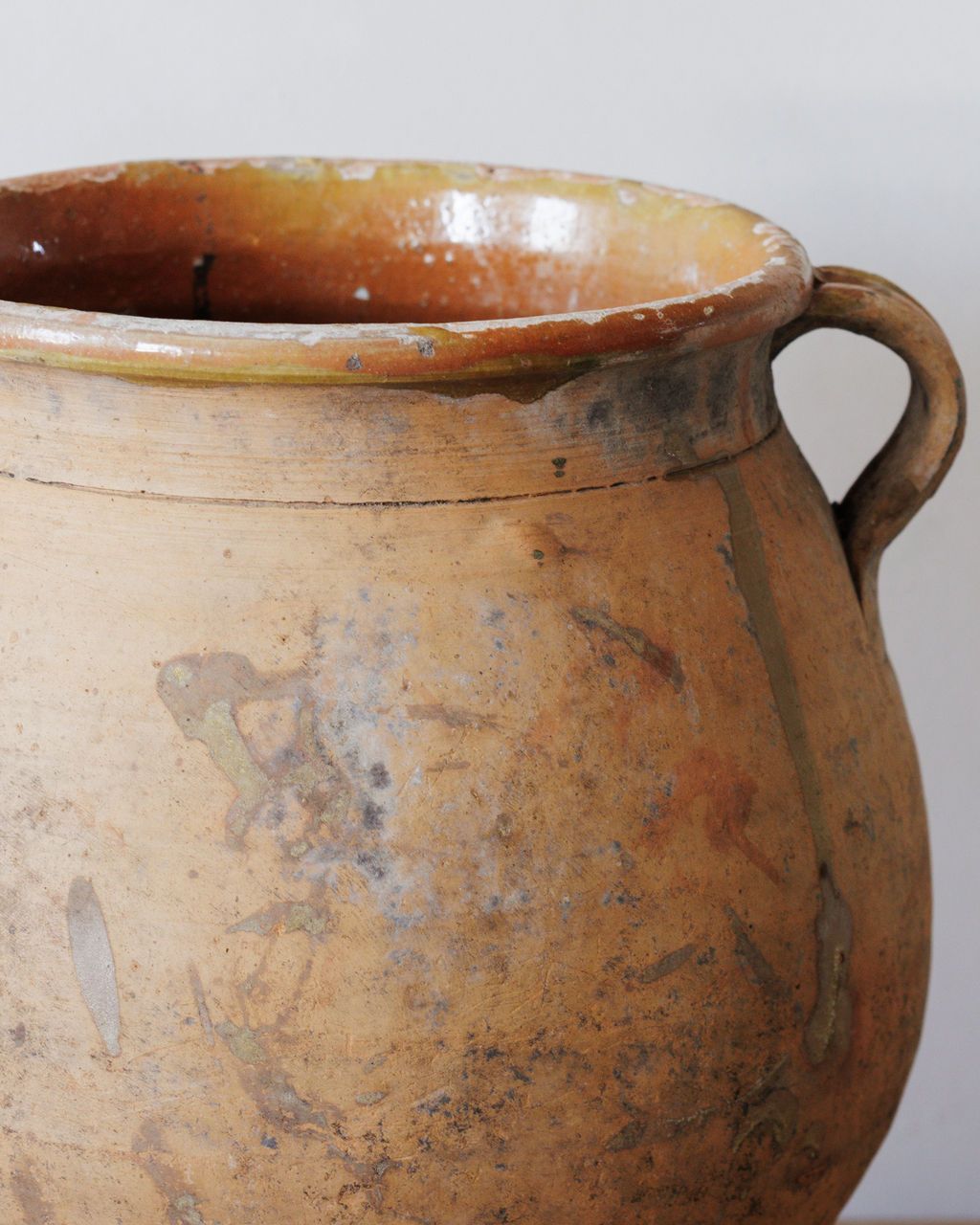 The perfect terracotta pot doesn't exis... This beautifully aged French Olive pot, once used to preserve olives, features a contrasting brown interior glaze. We love styling this pot with freshly cut flowers or on its own on open shelves.