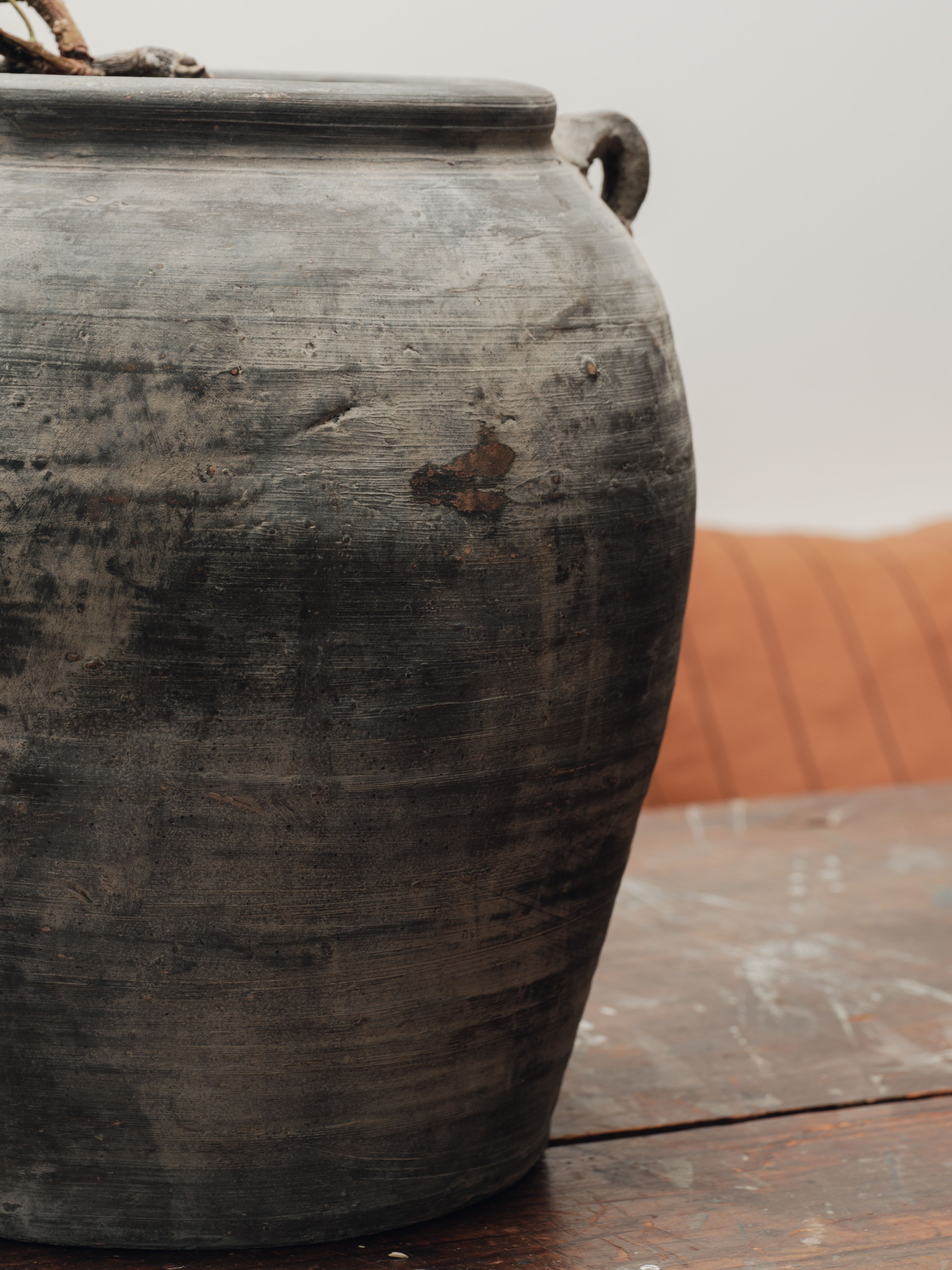 These vintage ceramic pots from China feature a beautifully rounded shape and two hand-crafted handles, originally designed for holding water or oil. Their unglazed matte finish adds a natural, earthy appeal, with shades ranging from light to dark gray. Each pot is unique in size and character, making it perfect as a standalone statement piece or repurposed as a stylish planter. Versatile and timeless, they’ll effortlessly elevate any space.