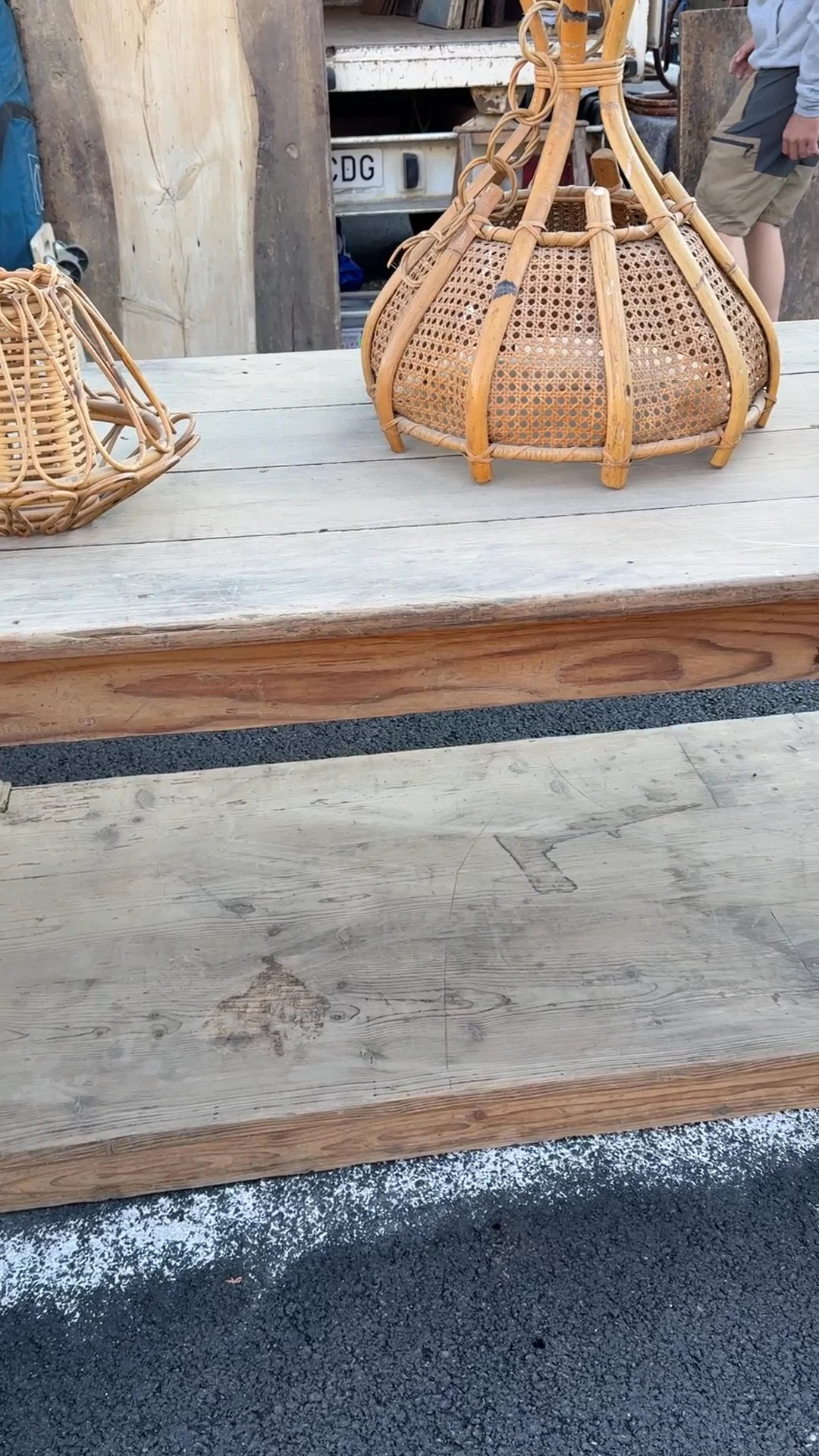 Found in Montpellier, this vintage rattan pendant lampshade is a rare mid-century piece with sculptural appeal. The curved rattan frame supports handwoven cane panels, creating a perfect balance of structure and airiness. The open weave allows light to filter through softly, casting delicate patterns across a room. Wrapped joints and a braided chain detail speak to its craftsmanship, making it just as striking unlit as it is when glowing from within. Sold as a lampshade only, ready for your own creative installation.