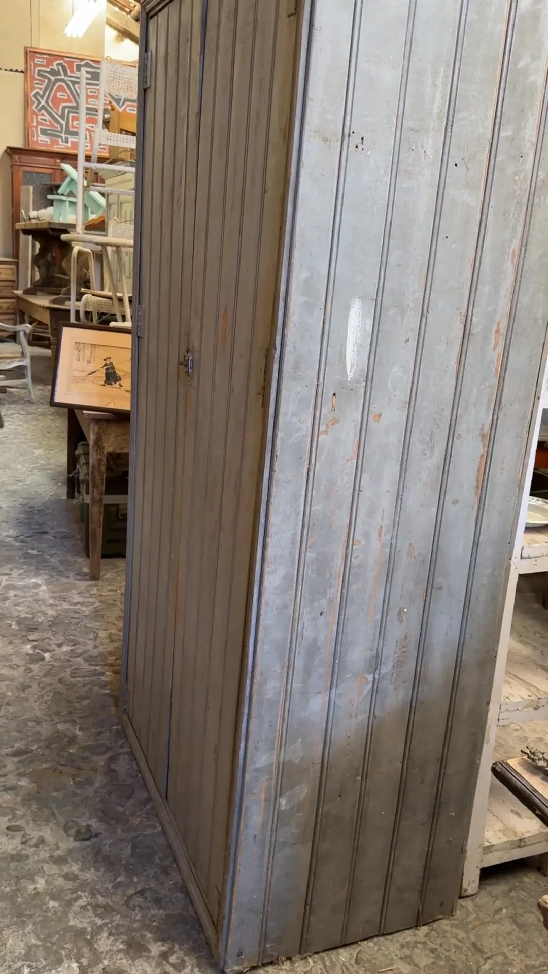 Straight from a woodworker’s shop in Saint-Rémy, this antique painted cupboard has lived a life of utility and craft. Discovered in Avignon, its muted grey paint and sturdy build tell the story of years spent storing tools, materials, and well-worn essentials. Now, it’s ready for a second act - whether holding glassware in the kitchen, linens in the pantry, or curiosities in your own workshop.