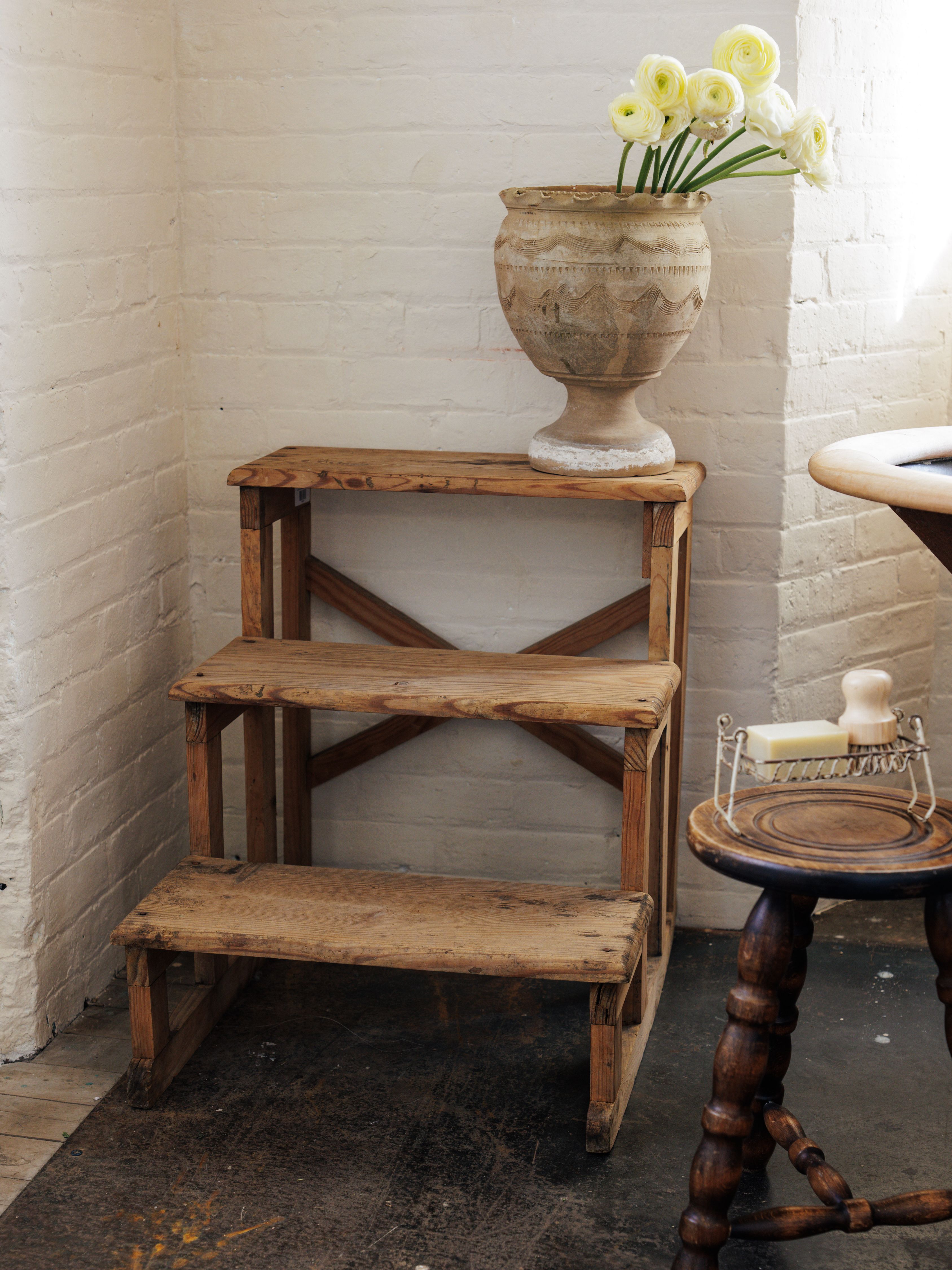 These early 20th-century Spanish steps, discovered in Béziers, France, are everything we love in a piece. With beautifully aged wood and a no-nonsense design, they feel effortlessly cool and packed with history. Sylvie loves using them as a plant stand, a home for your favorite books, or even as a charming bathroom accent.