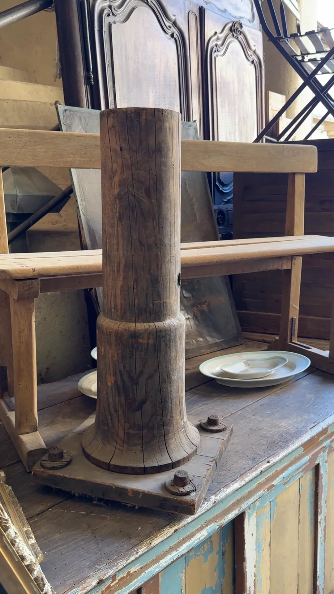 A classic piece of French schoolhouse charm. This wooden bench, found tucked away in an Avignon warehouse, has been stripped back to reveal its raw beauty. The simple, functional design speaks to its history—once lined up in a classroom, now ready for a new life. The pale, sun-worn wood, sturdy construction, and simple silhouette make it endlessly versatile. Sylvie loves this beauty placed in an entryway, at the foot of a bed, or along a dining table.